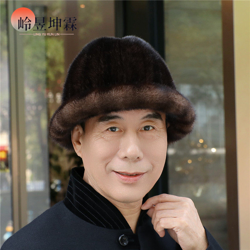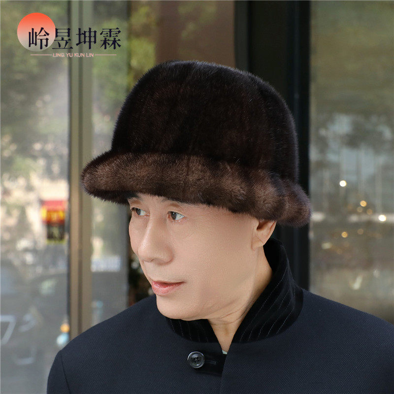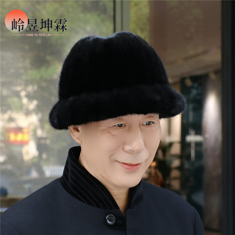 📚 貂皮帽子男冬季皮草爵士帽中老年人保暖加厚水貂毛帽子时尚百搭新