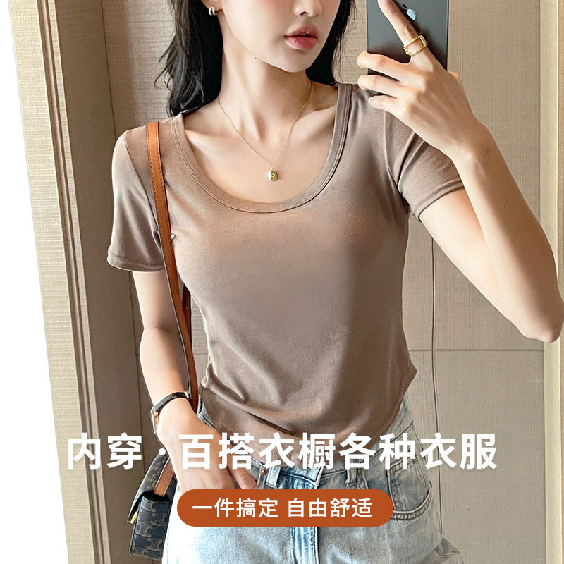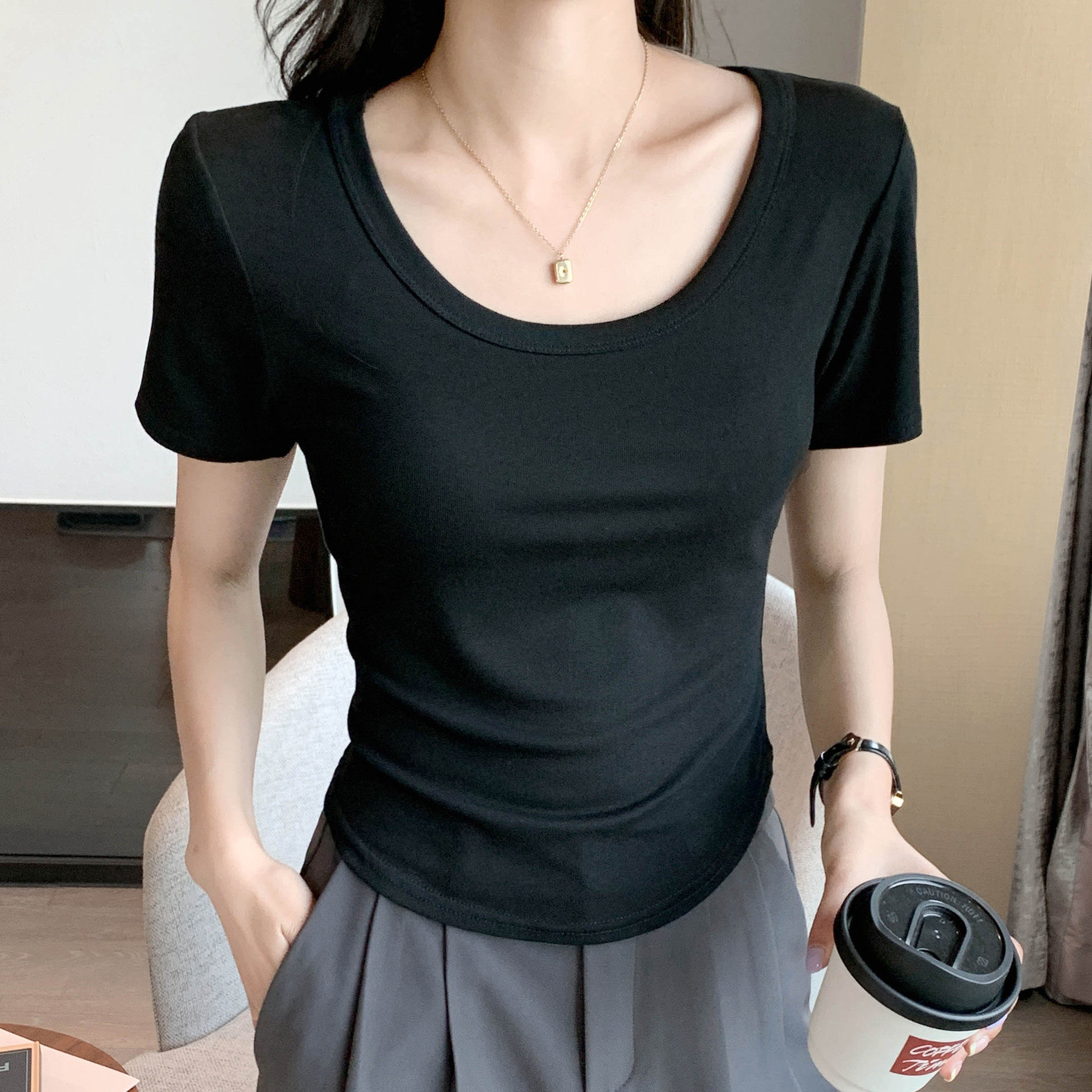 📚 H227白色短袖t恤女新款春夏季薄款内搭u领打底衫外穿直播短款上衣