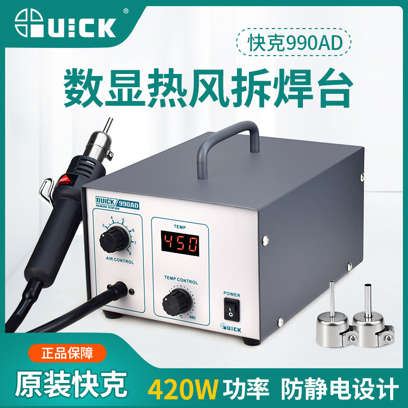 📚 QUICK快克990AD热风枪数显调温手机电子维修热风拆焊台SMD拔焊台