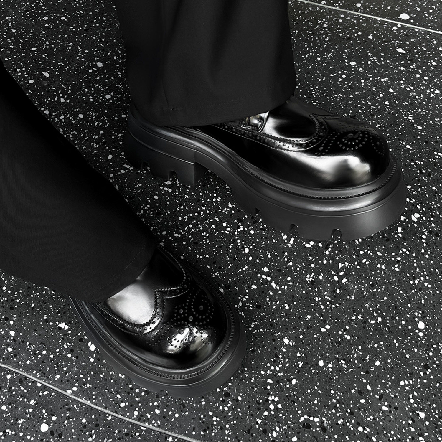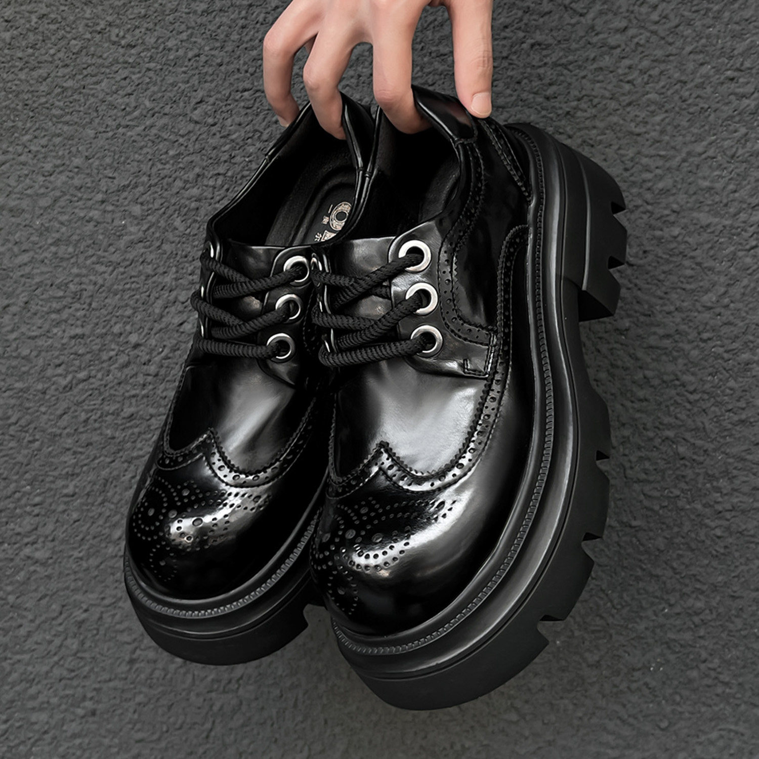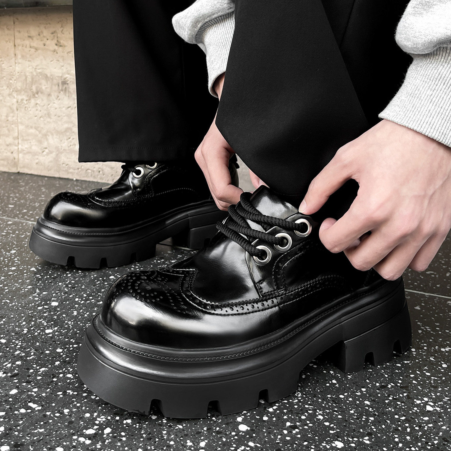 📚 布洛克德比鞋老钱风男士皮鞋潮流百搭时尚厚底真皮6CM增高休闲鞋