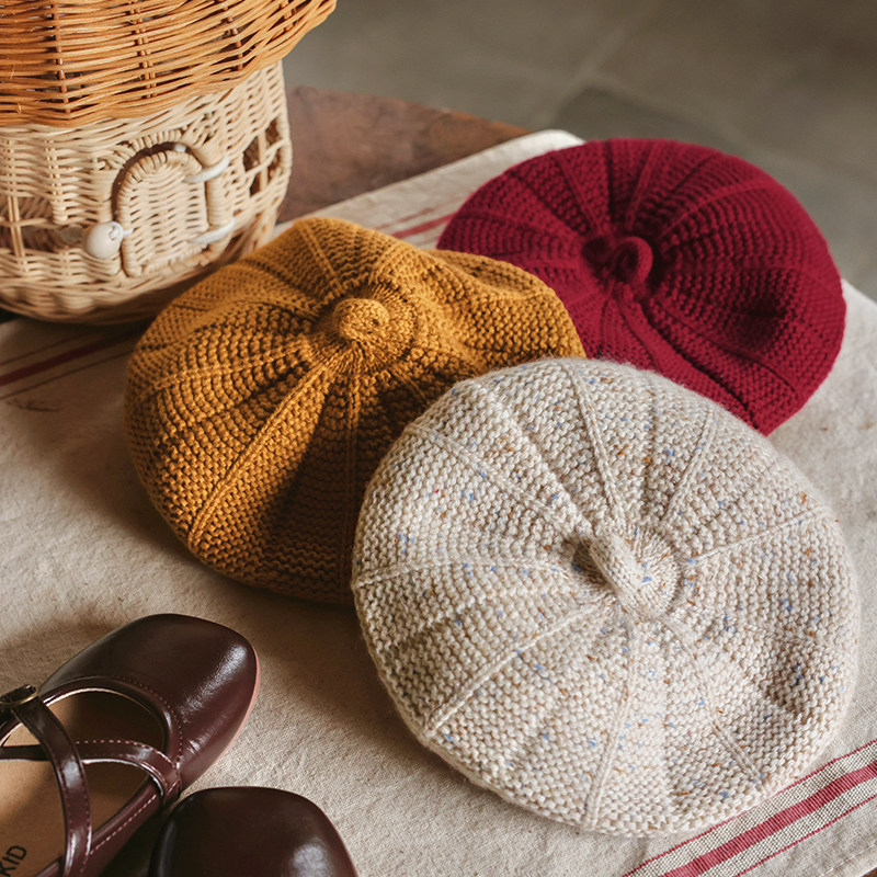 📚 考拉鼻鼻[甜心贝雷帽·洋气穿搭单品]女宝百搭多色保暖针织帽子