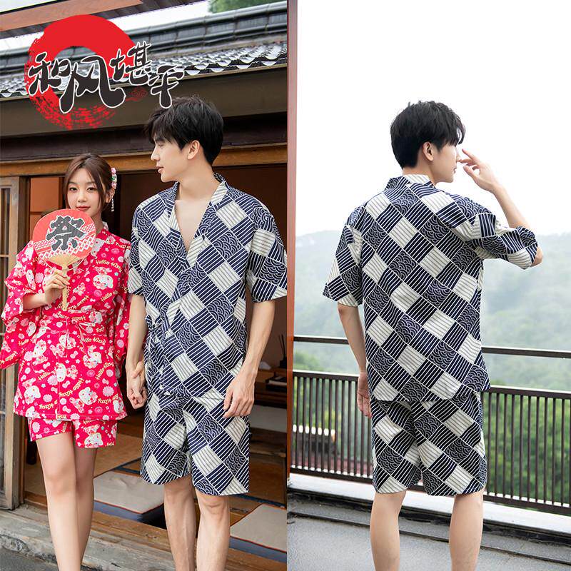 📚 和风 情侣汗蒸服纯棉可爱女款小和服开衫家居睡衣男款浴服桑拿服