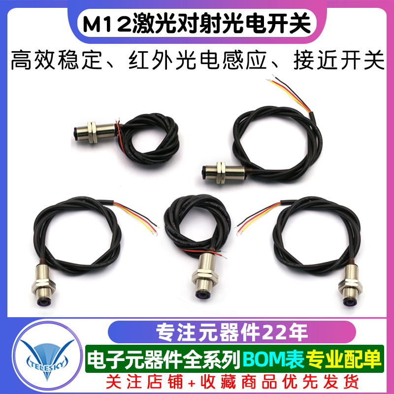📚 M12 激光对射光电开关红外光电感应接近开关红外对射管常开传感器