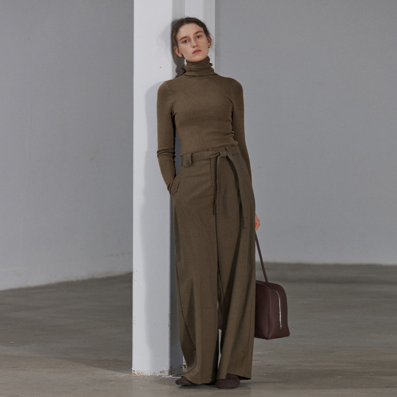 📚 NON RESTRAIN法式堆堆领羊毛混纺针织衫女修身长袖打底衫高领毛衣