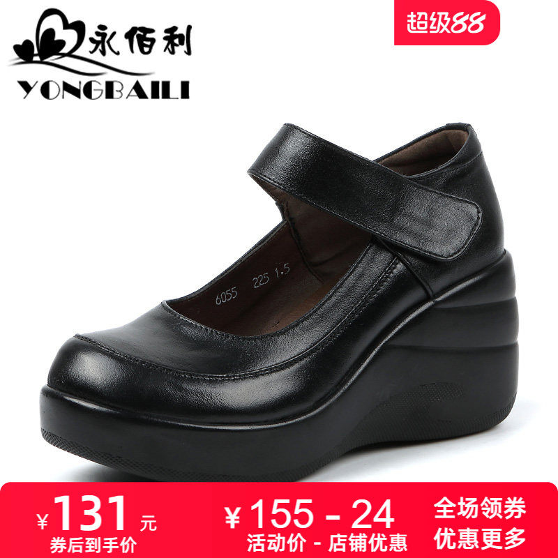 📚 厚底真皮单鞋2026春新款牛皮坡跟真皮工作单鞋松糕底低帮女鞋皮鞋