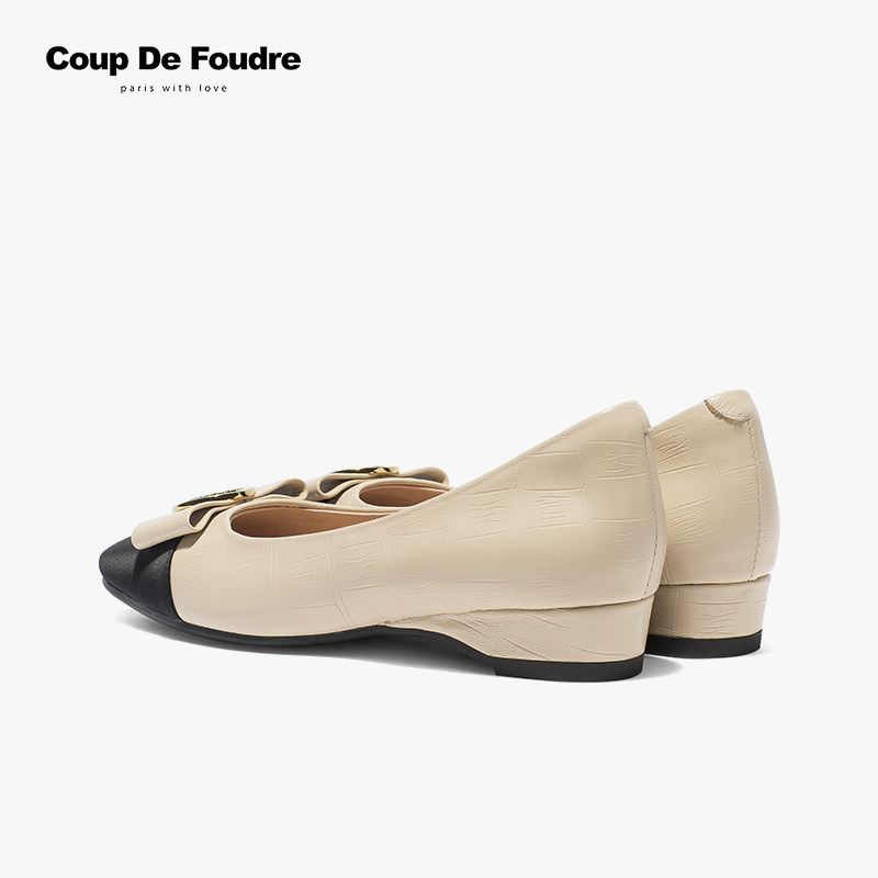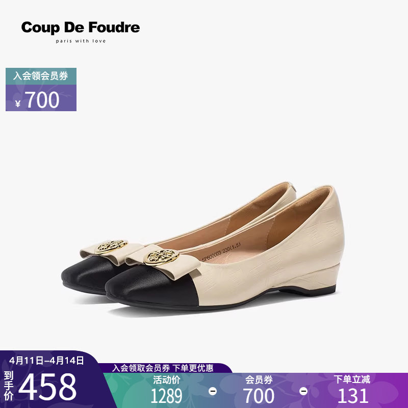 📚 CDF女鞋轻奢秋季法式百搭羊皮小香风低跟蝴蝶结浅口粗跟软底单鞋