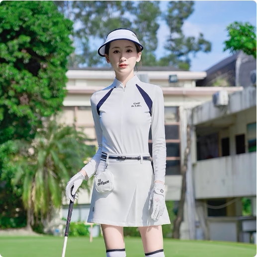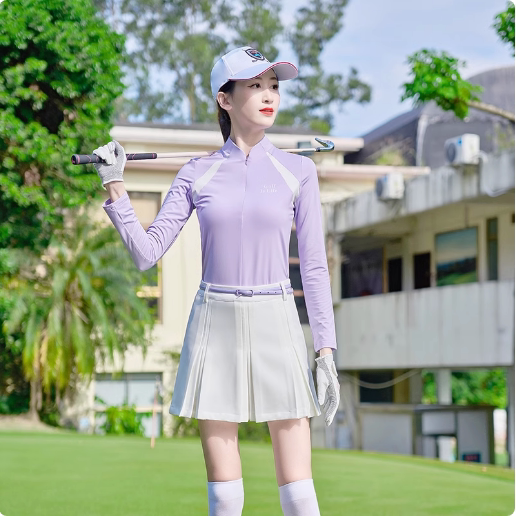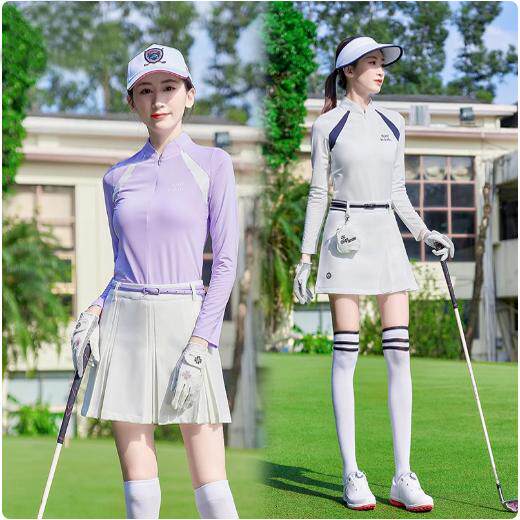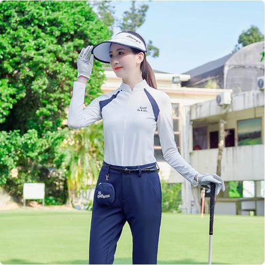 📚 新款春季高尔夫女士长袖T恤衫立领修身百搭显瘦速干运动球衣服装