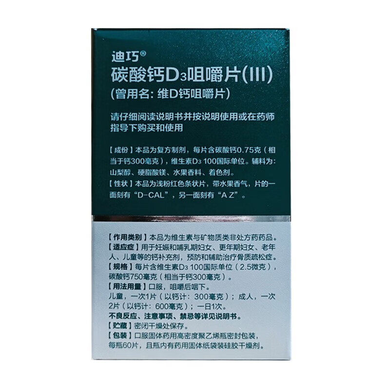 📚 D-Cal/迪巧 碳酸钙D3咀嚼片(III) 60片*1瓶/盒
