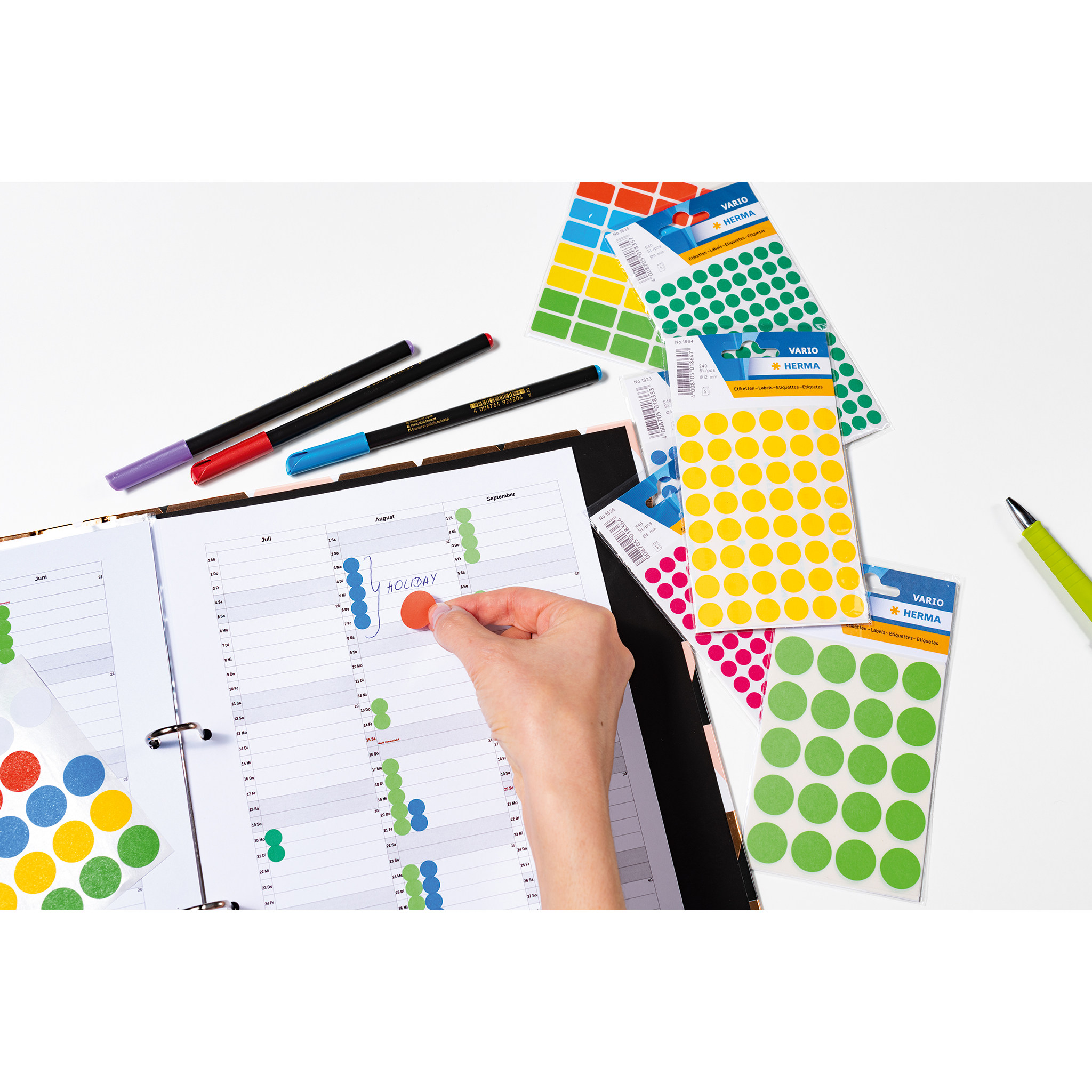 📚 HERMA 1831 德国豪玛红黄蓝绿圆点不干胶标签红黄蓝绿圆形贴纸8mm