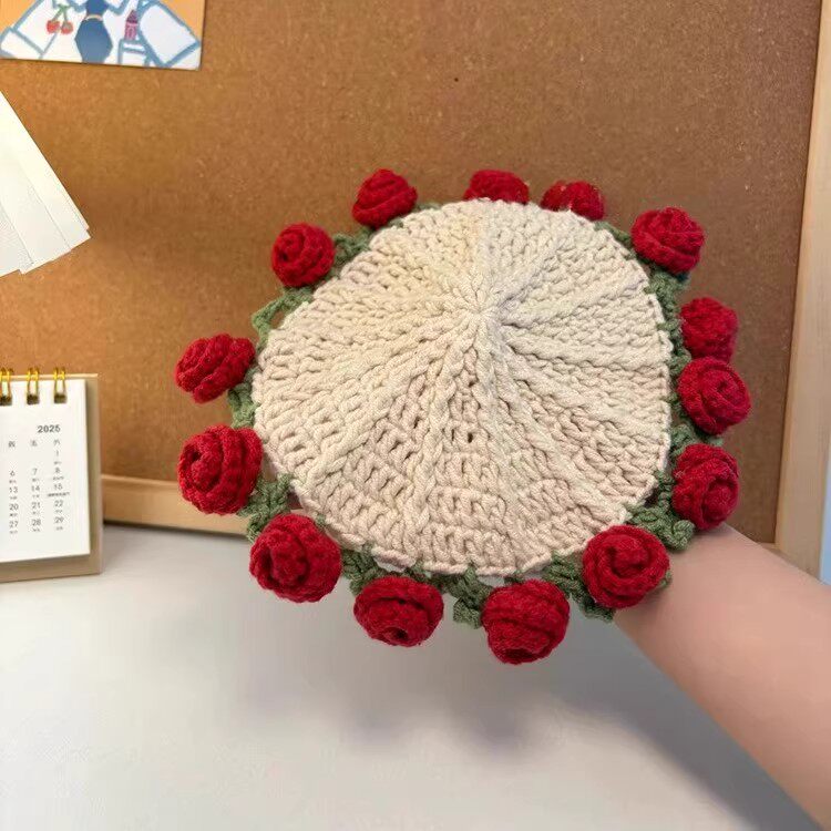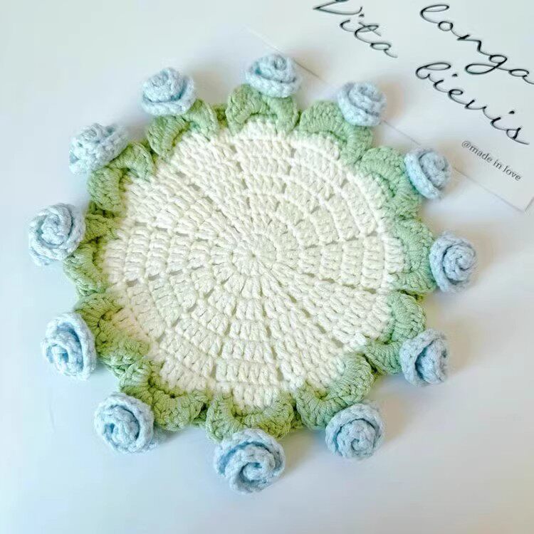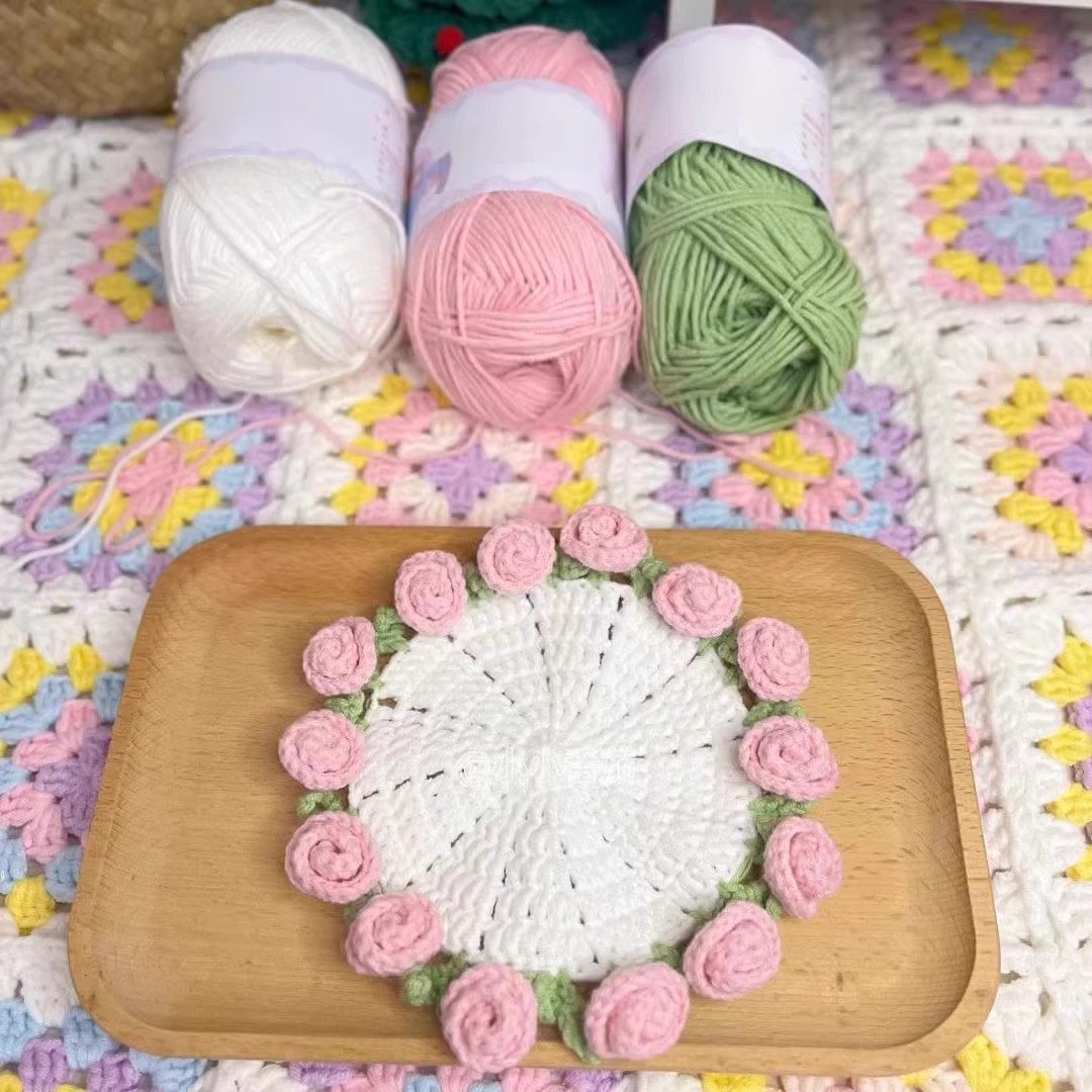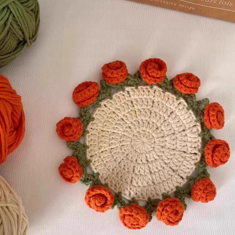 📚 迷你玫瑰花束杯垫毛线钩针手工diy编织材料包针织勾无聊解闷手工
