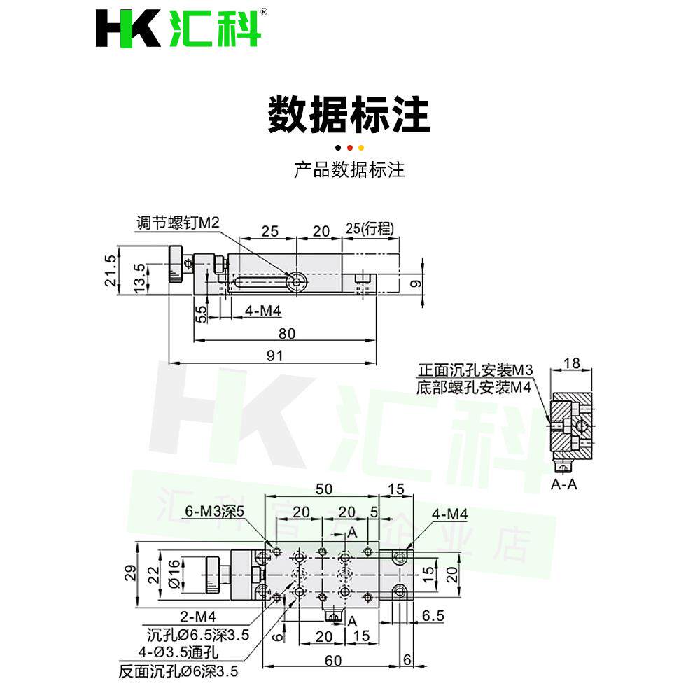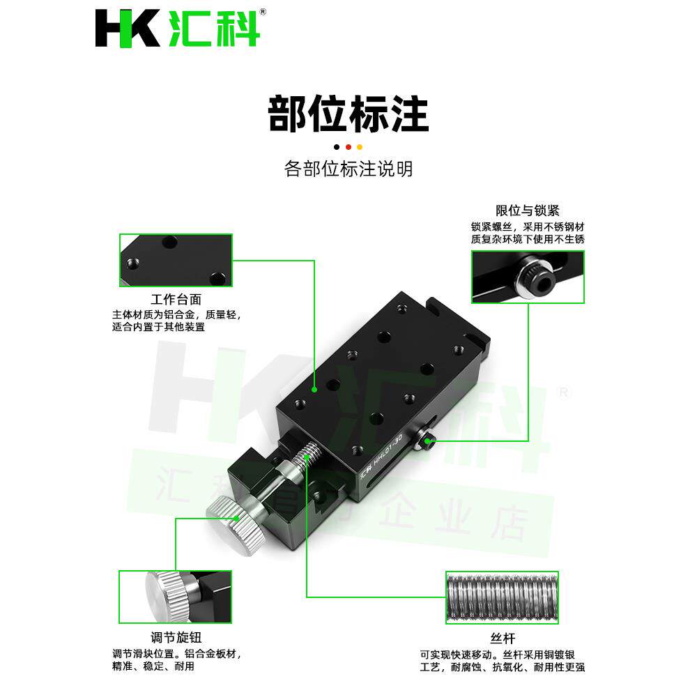 📚 X轴进给丝杠型位移平台侧面调整型简易夹紧滑台HHL01-30/XKCS30