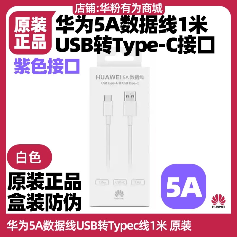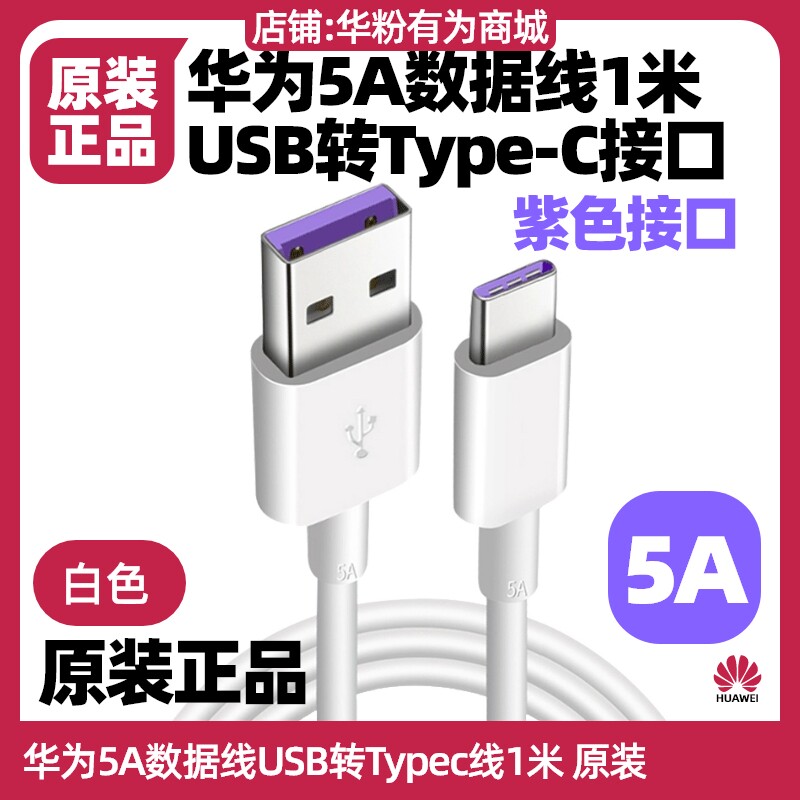 📚 华为5A数据线原装快充手机充电线P30/P40pro/Mate20X/30/40E/nova5 Pro/6/7/nova7 Pro加粗USB转TypeC快充1米