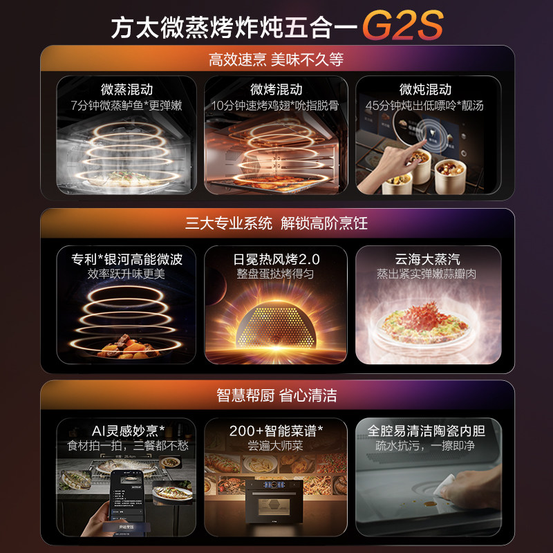 📚 方太微蒸烤一体机G2S嵌入式蒸箱烤箱微波炉蒸烤炖炸五合一