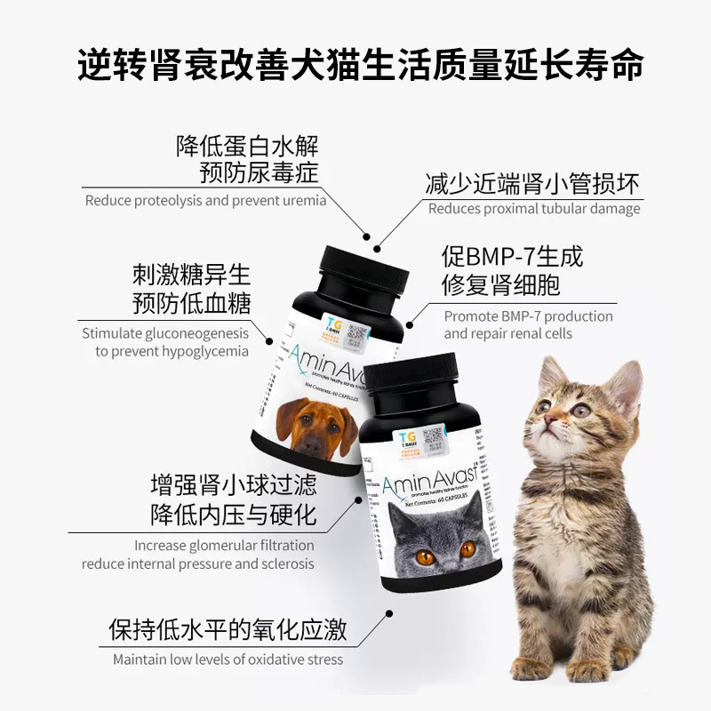 📚 美国AminAvast胺肾狗猫慢性肾衰犬降磷肌酐护肾透损伤衰竭安心停