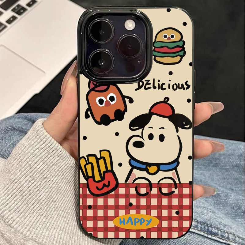 📚 红格纹小狗汉堡适用苹果16promax/15promax/16pro/15pro/14pro果冻防摔手机壳华为P70/mate60vivoppo小米15套