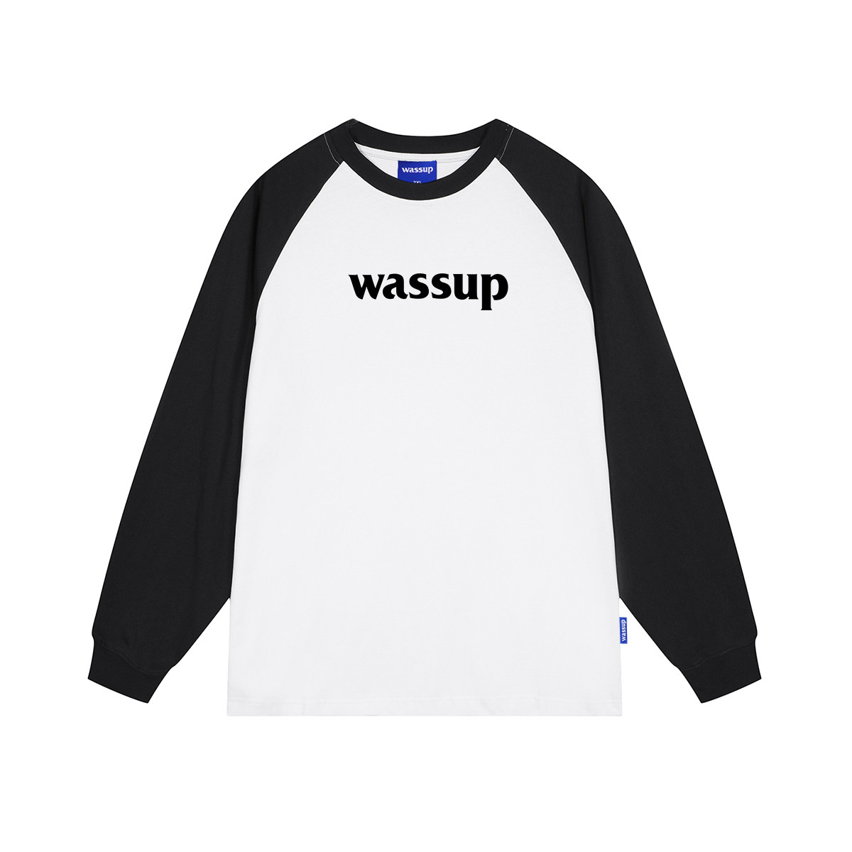 📚 WASSUP潮牌黑白字母印花长袖T恤男女春秋百搭打底圆领情侣上衣服
