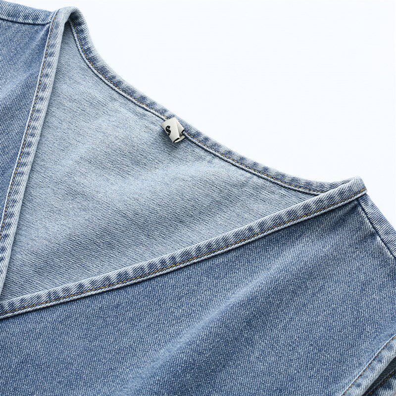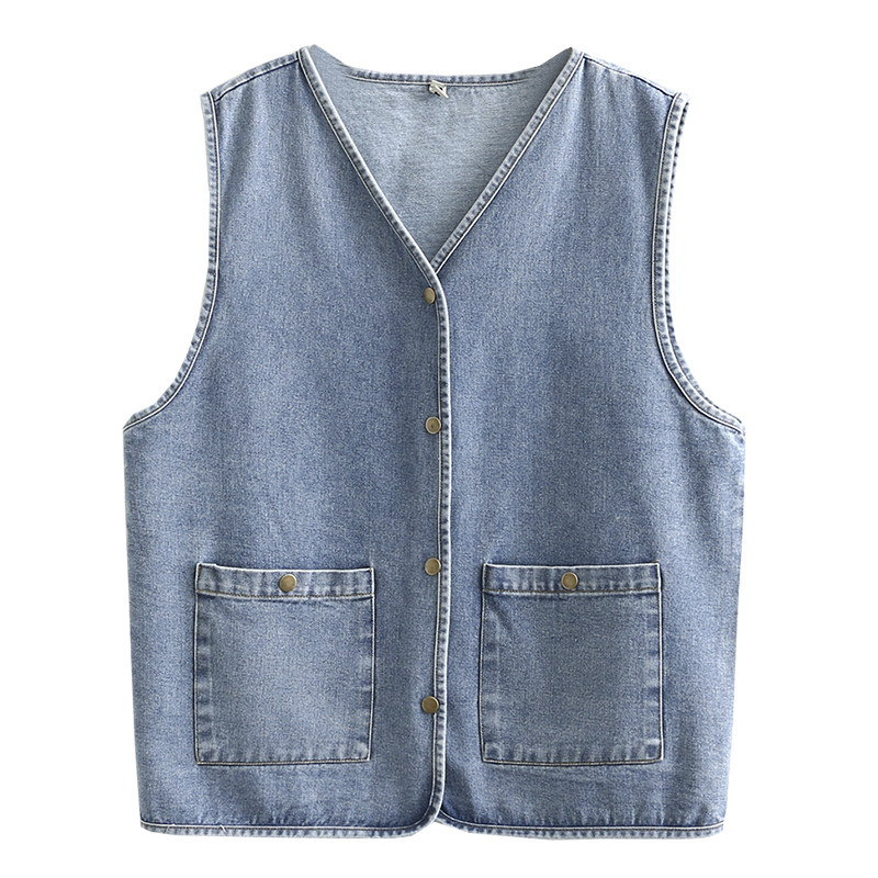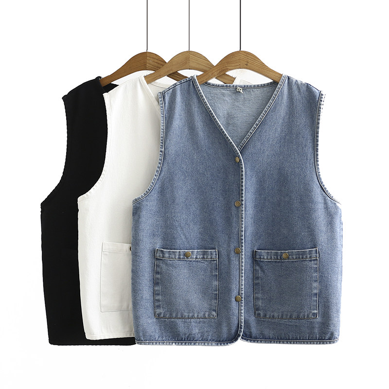 📚 2020秋季新款大码女士休闲上衣加大码V领复古双口袋牛仔无袖马甲
