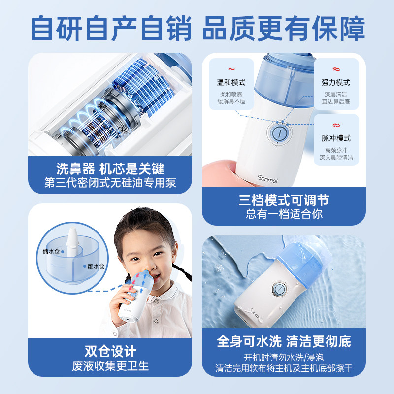 Sonmol朔茂 医用电动喷雾洗鼻器 儿童鼻炎生理海盐水 家用鼻腔冲洗器 夏日鼻腔健康 种草笔记