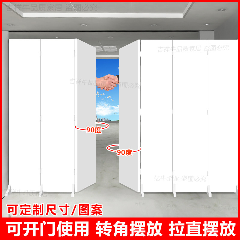 📚 房间分割隔断带有门屏风遮挡板能开门自装移动折叠转角定制白色