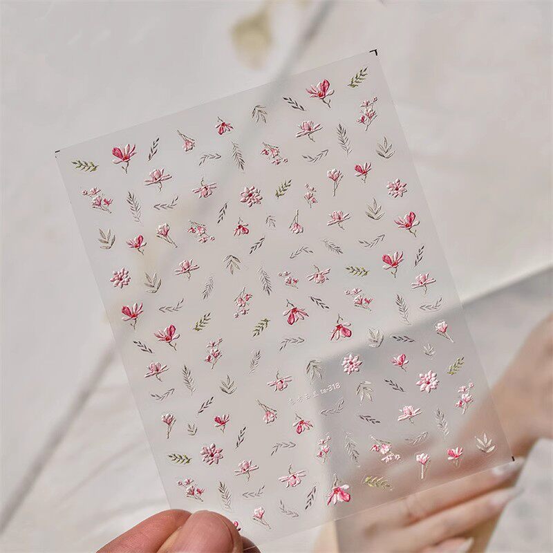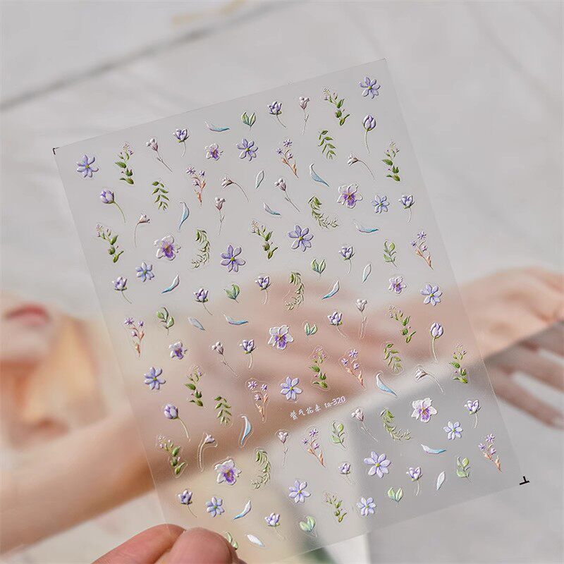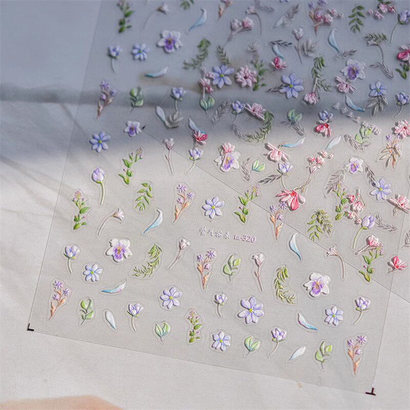 📚 东方玉兰美甲贴纸浮雕中国风紫气花来背胶5d网红新款指甲贴纸装饰