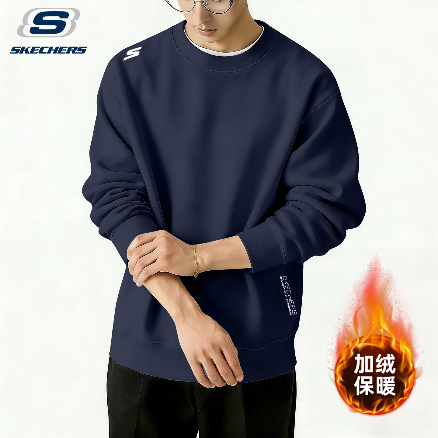 📚 斯凯奇卫衣男士简约大码2026春季宽松休闲上衣纯色时尚运动套头衫