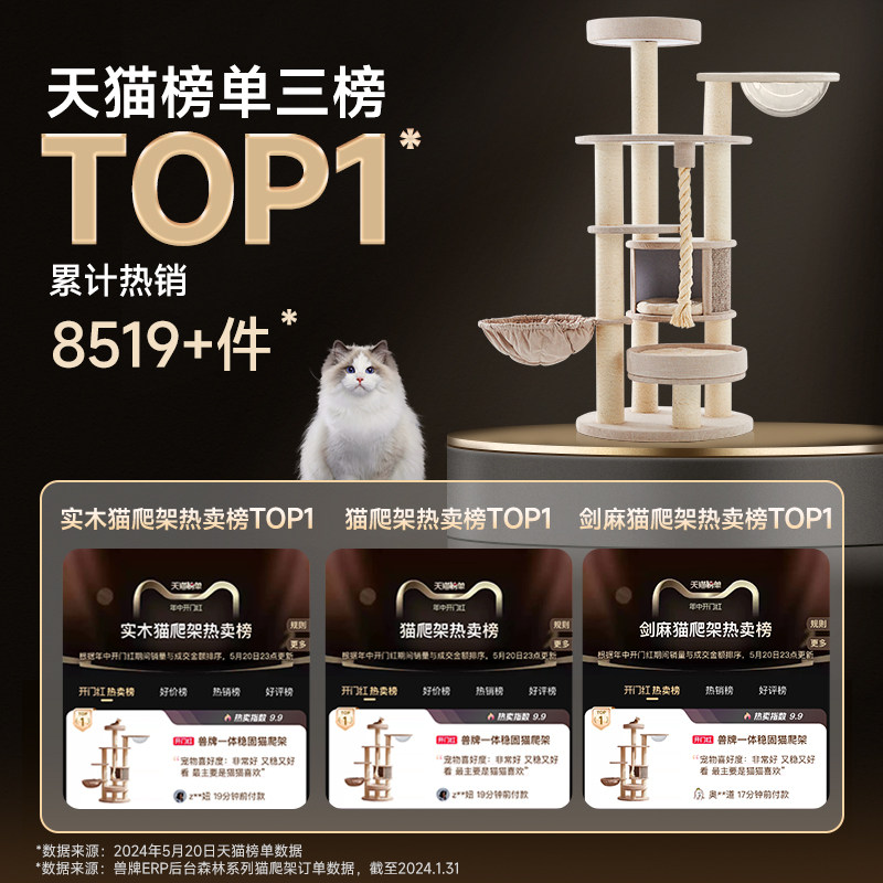 📚 兽牌森林猫爬架猫窝猫树一体多猫大猫专用大型猫缅因家用剑麻
