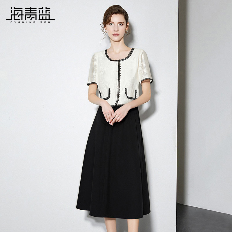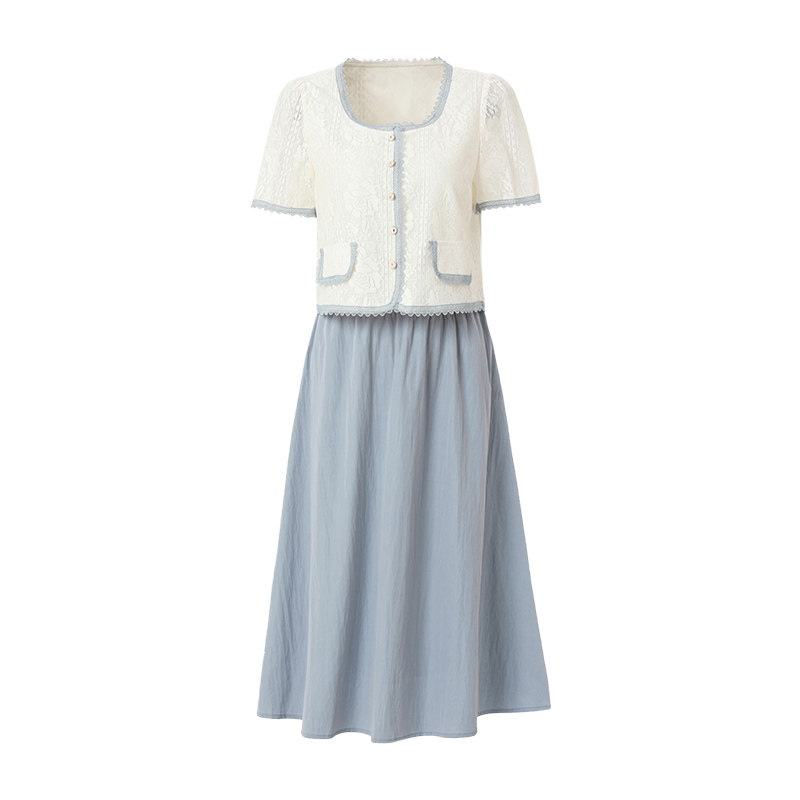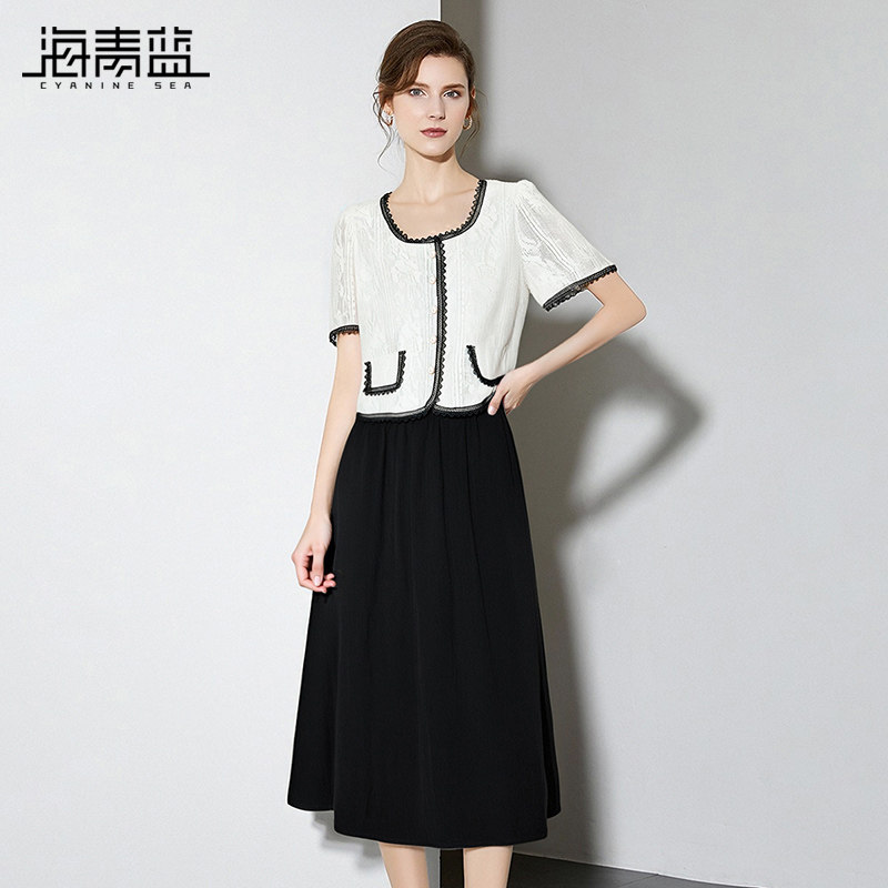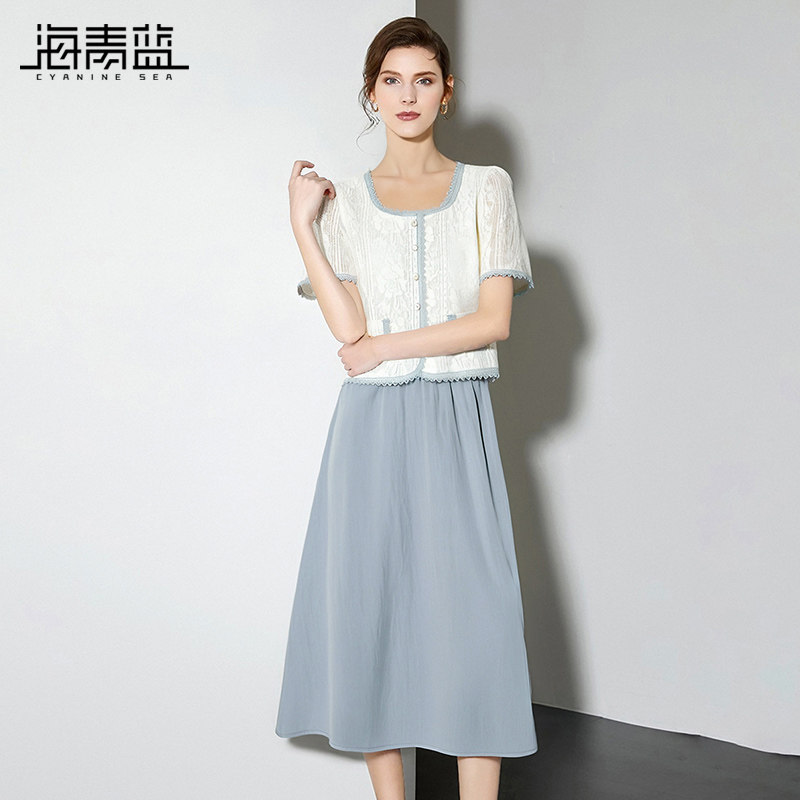 📚 海青蓝 高端套装设计感蕾丝上衣2026年夏季松紧腰半身裙两件套女