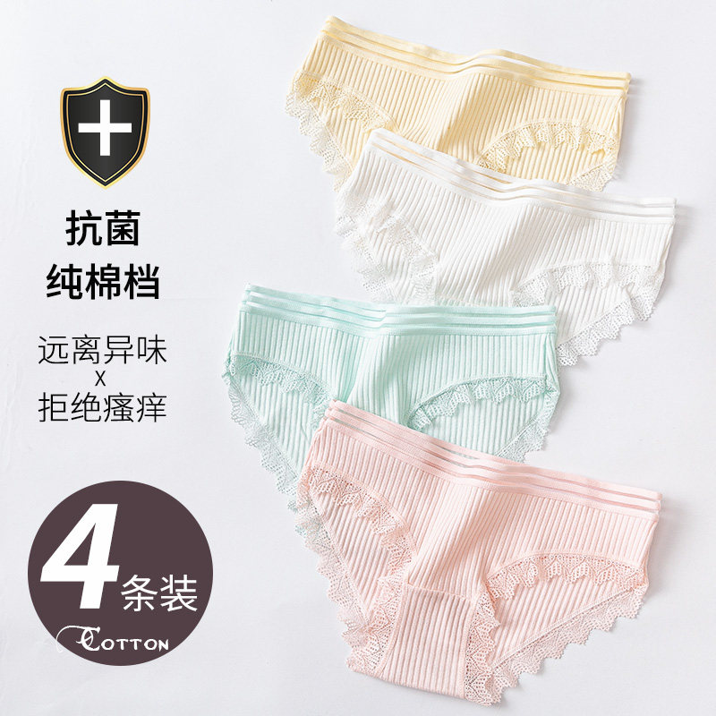 📚 4Pack Women's Sexy Underwear -Lace Band Cotton Thong Panties