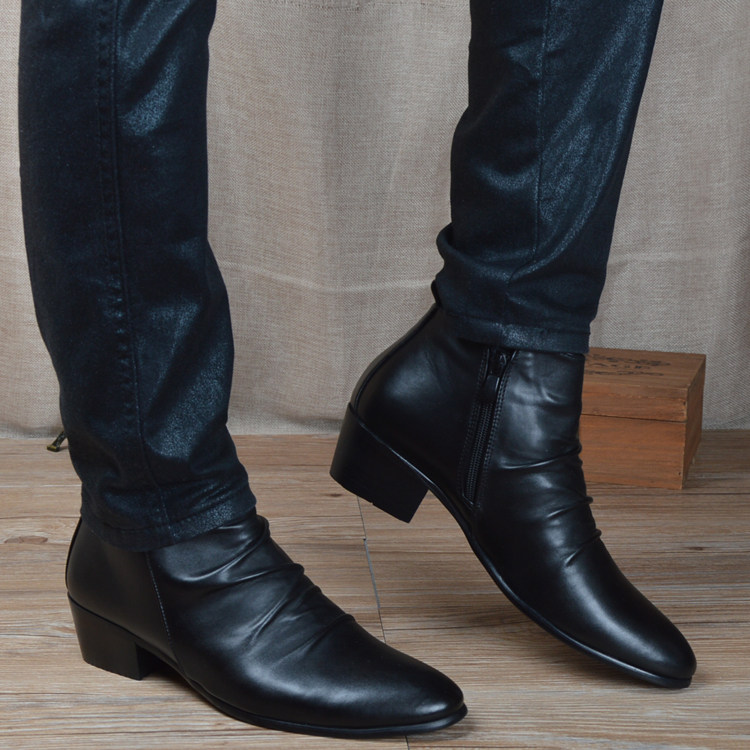📚 男士韩版潮流皮靴英伦风尖头短靴内增高中帮男靴子马丁靴高帮皮鞋