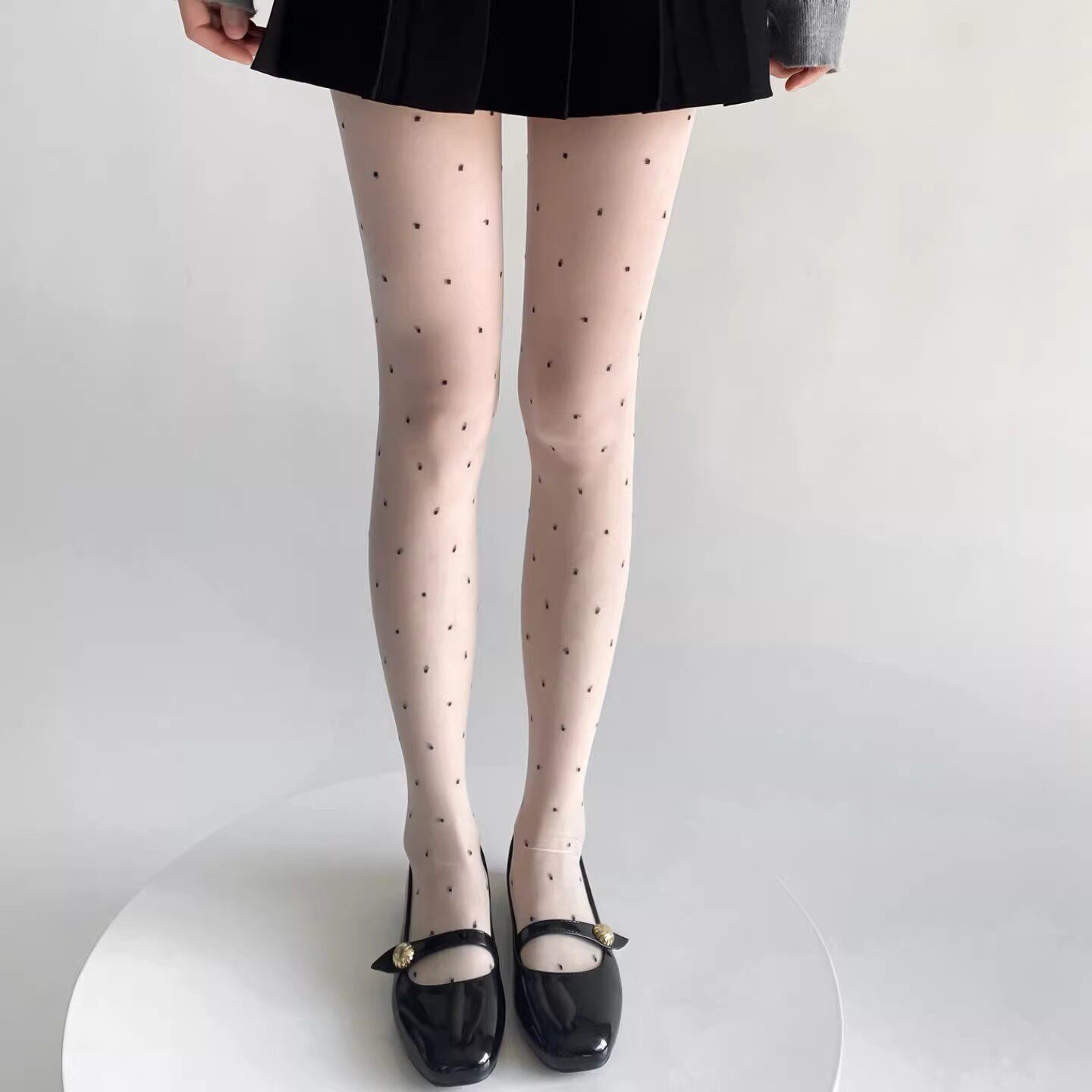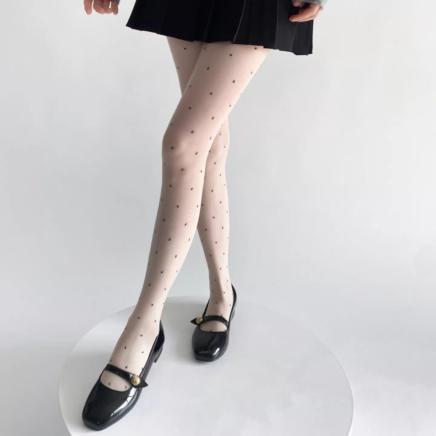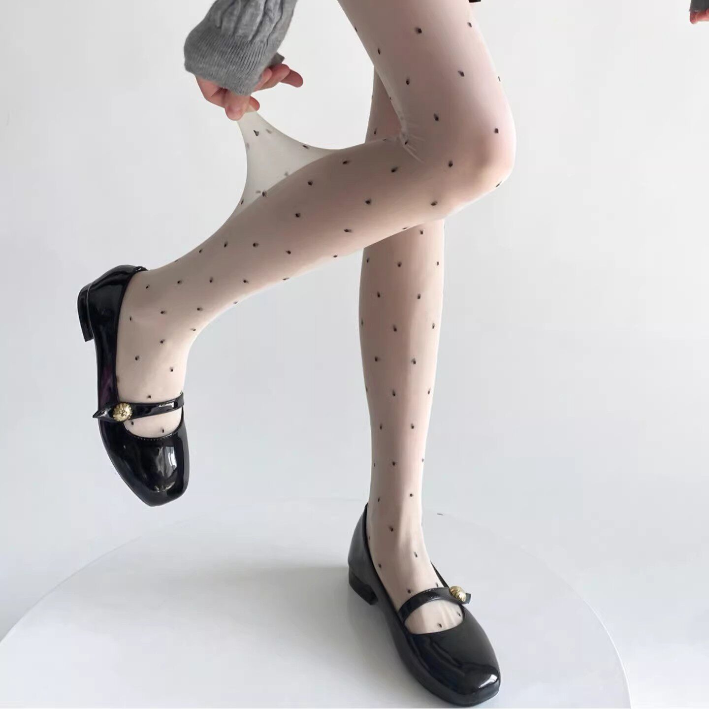 📚 唯美波点~被纯欲到了 包芯丝提花丝袜圆点爱心超薄显瘦百搭打底袜