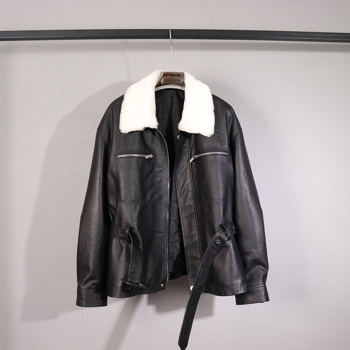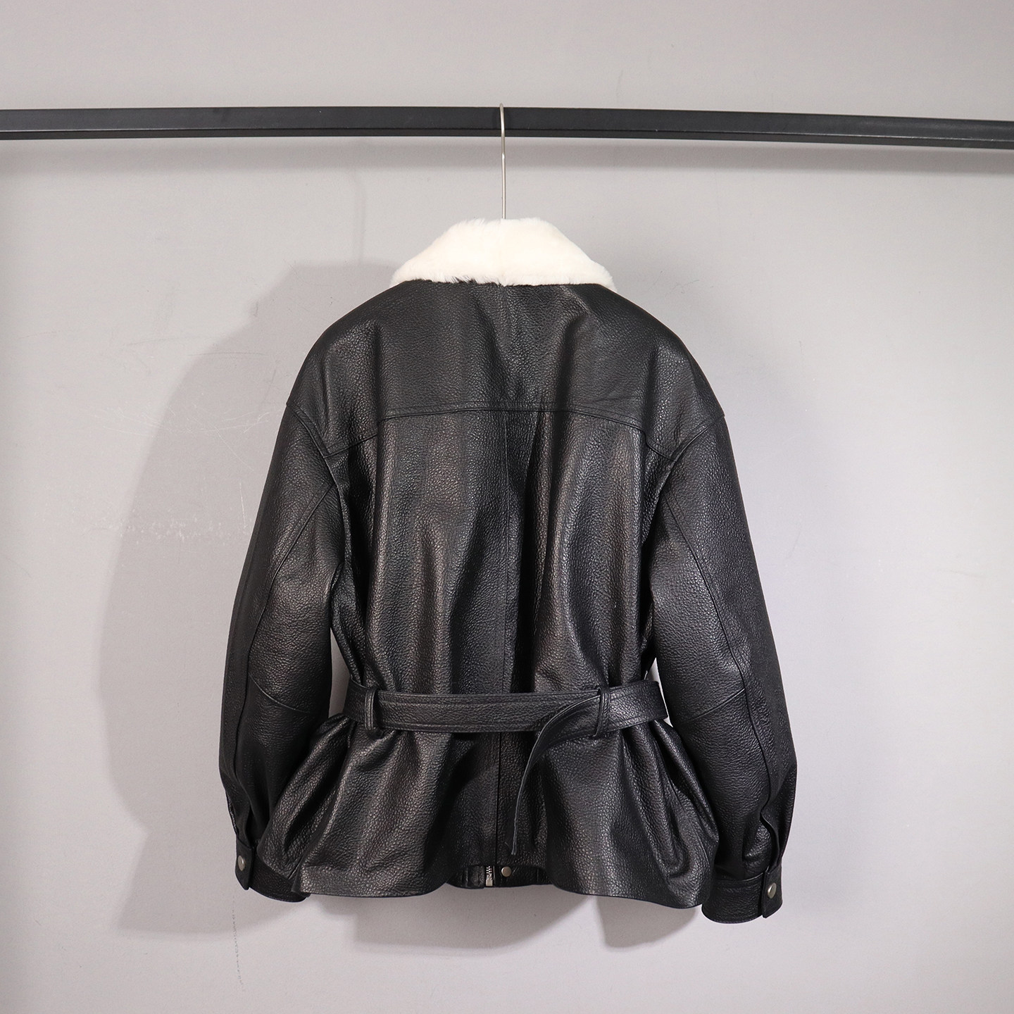 📚 冬季新款真皮加棉皮衣女大毛领收腰短款绵羊皮夹克腰带长袖外套