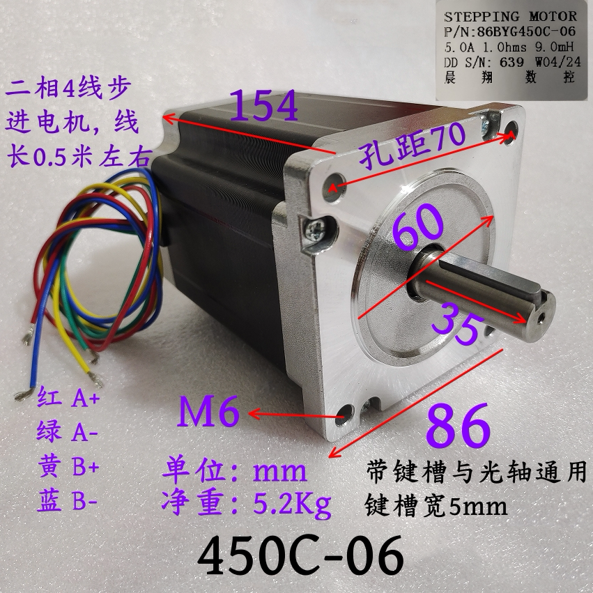 📚 雕刻机步进电机86BYGH450C-06,轴颈14mm/12.7mm/12N.M长154MM马达