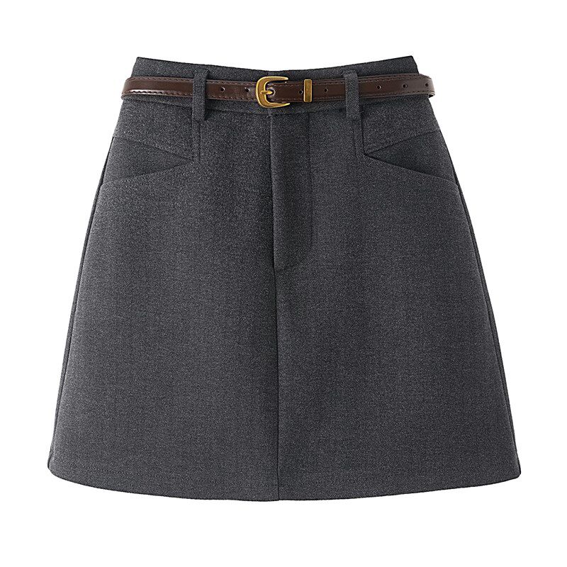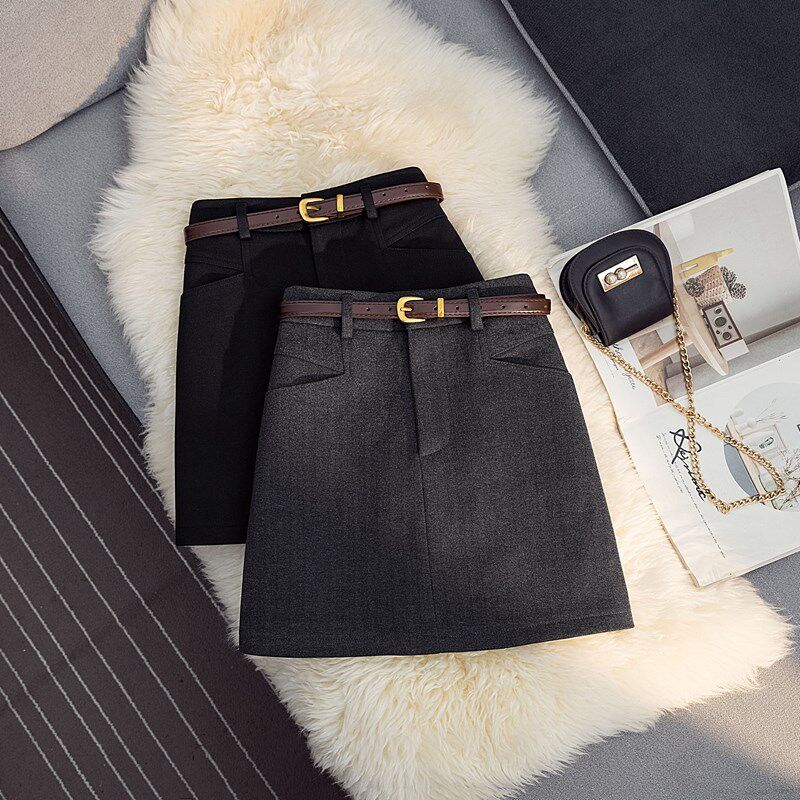 📚 毛呢西装半身裙女2024秋冬新款高腰防走光A字裙显瘦打底包臀短裙