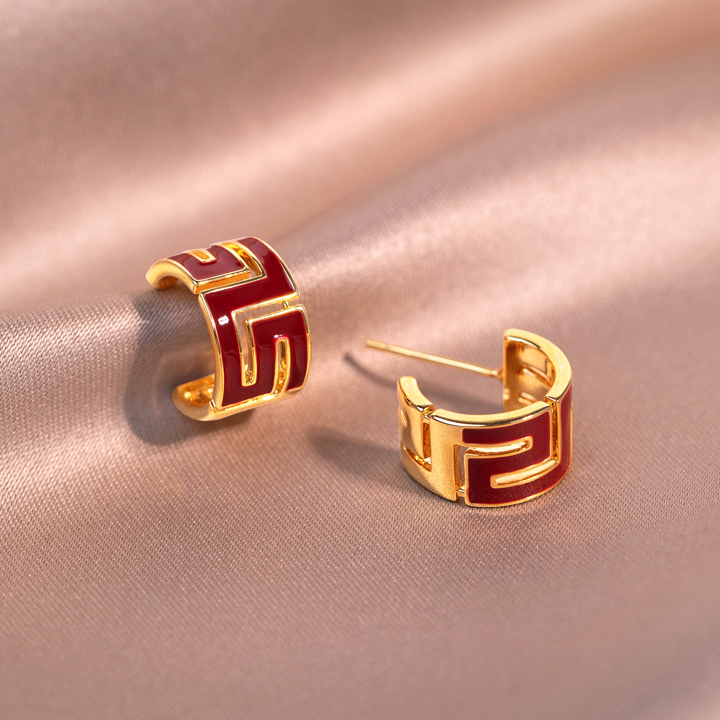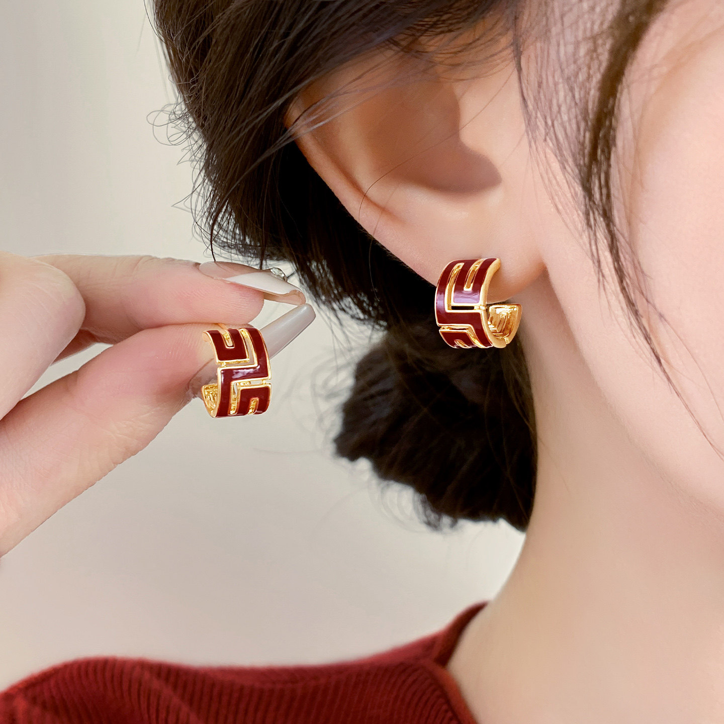 📚 安可拉红色几何图形耳钉女2026新款爆款高级感纯银针耳环时尚耳饰