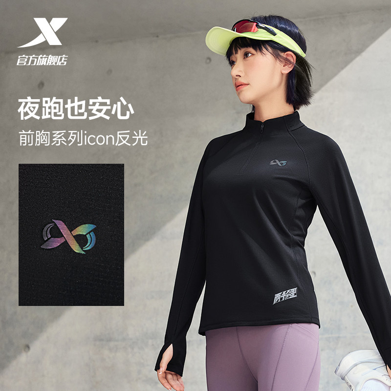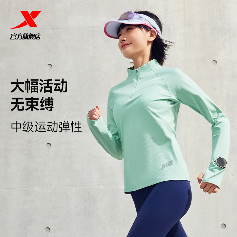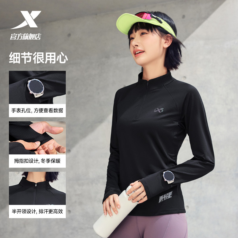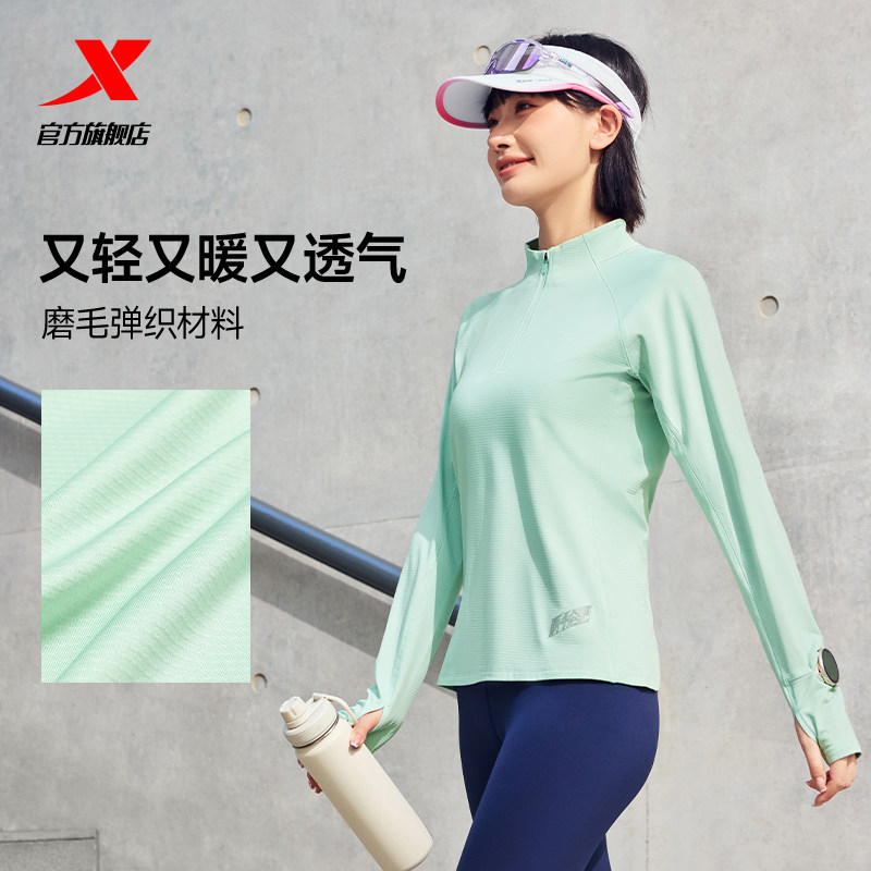📚 特步两千公里系列针织运动长袖女款秋速干半拉链立领跑步加绒T恤