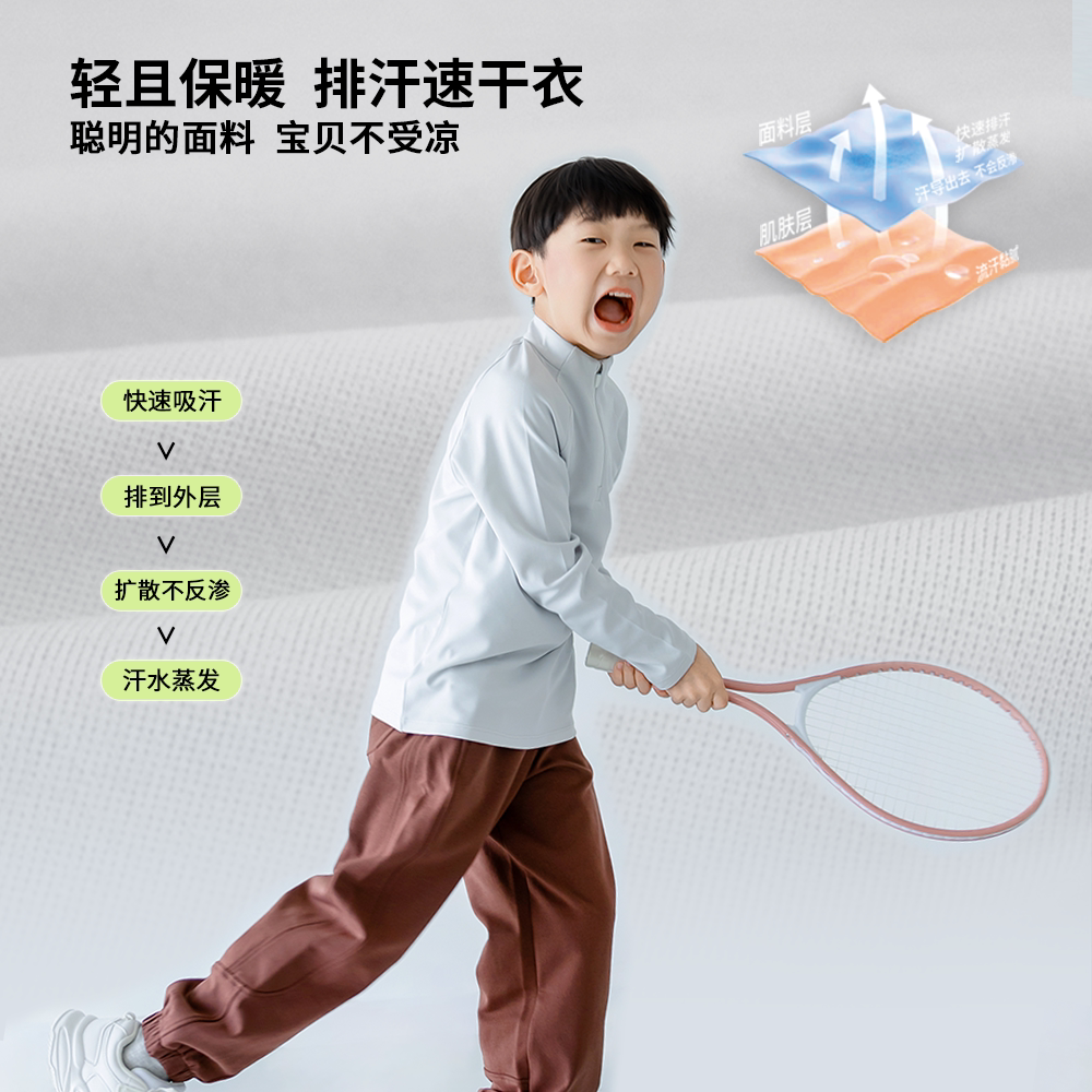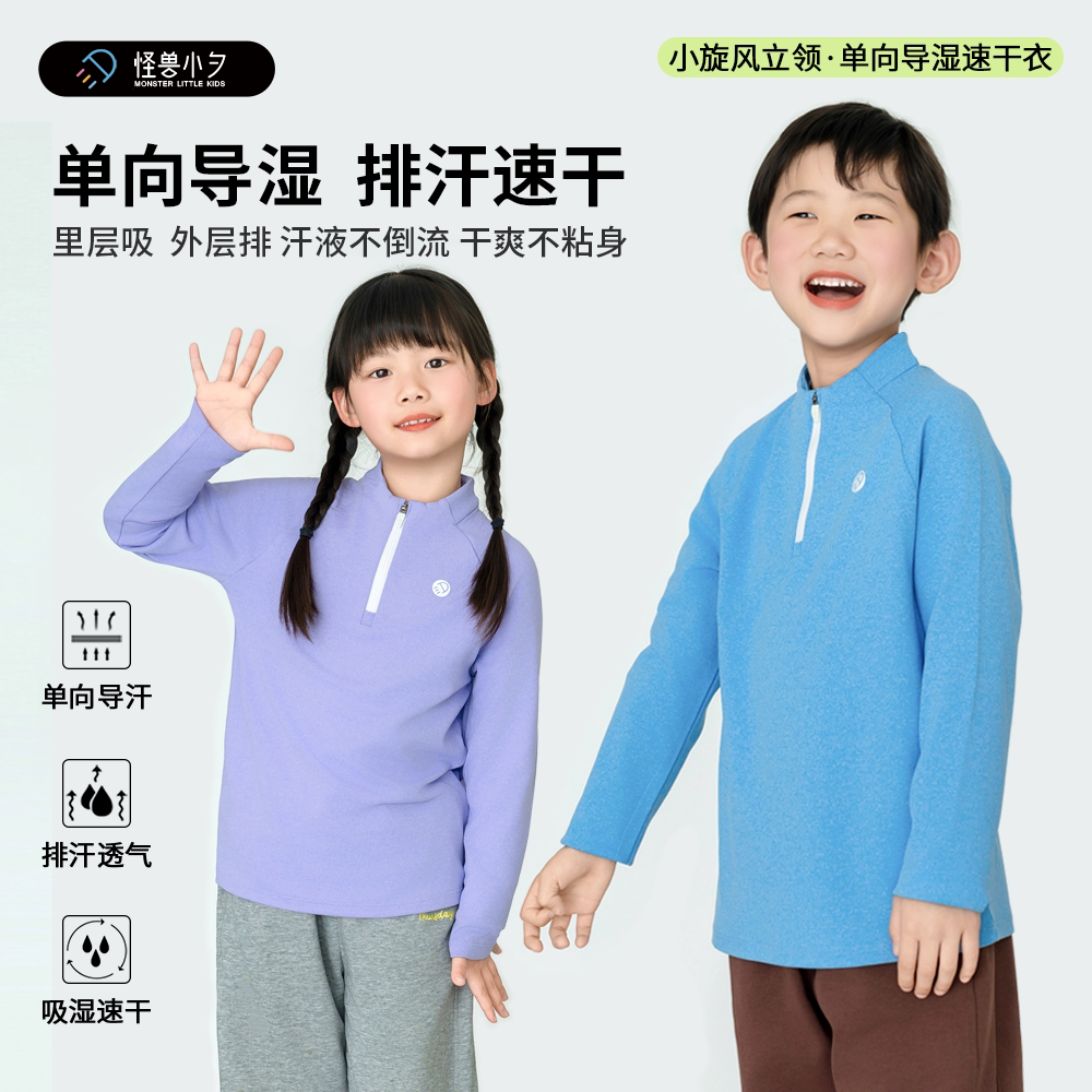 📚 儿童单向导湿速干衣小旋风出汗不凉立领拉链护脖运动上衣春秋新款