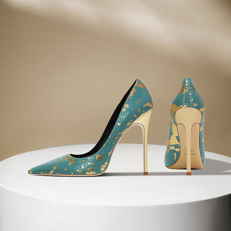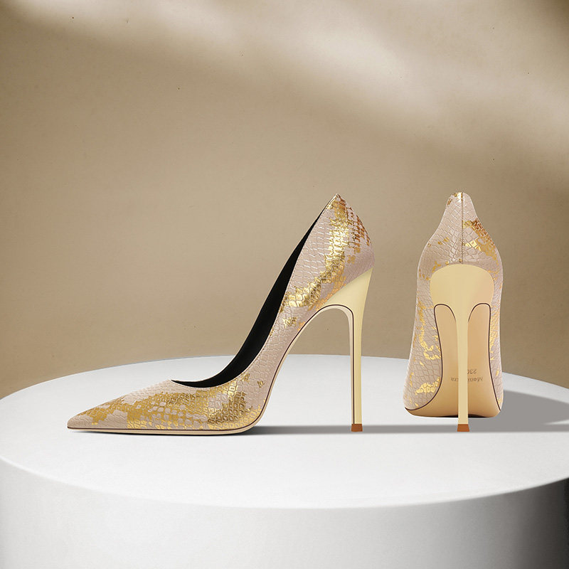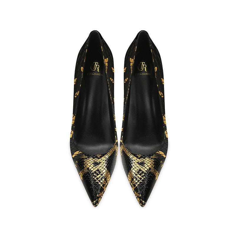 👠揭秘新品:法式蛇纹高跟鞋女细跟2025春秋新款