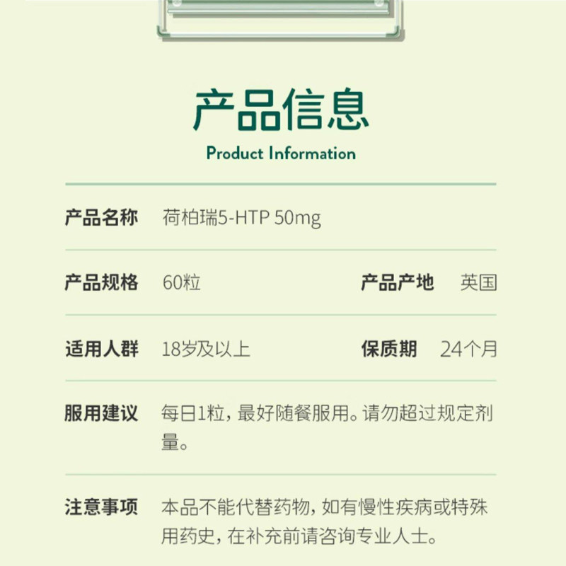 📚 现货仓 英国Holland Barrett荷柏瑞5-HTP睡眠营养片50mg60粒成人