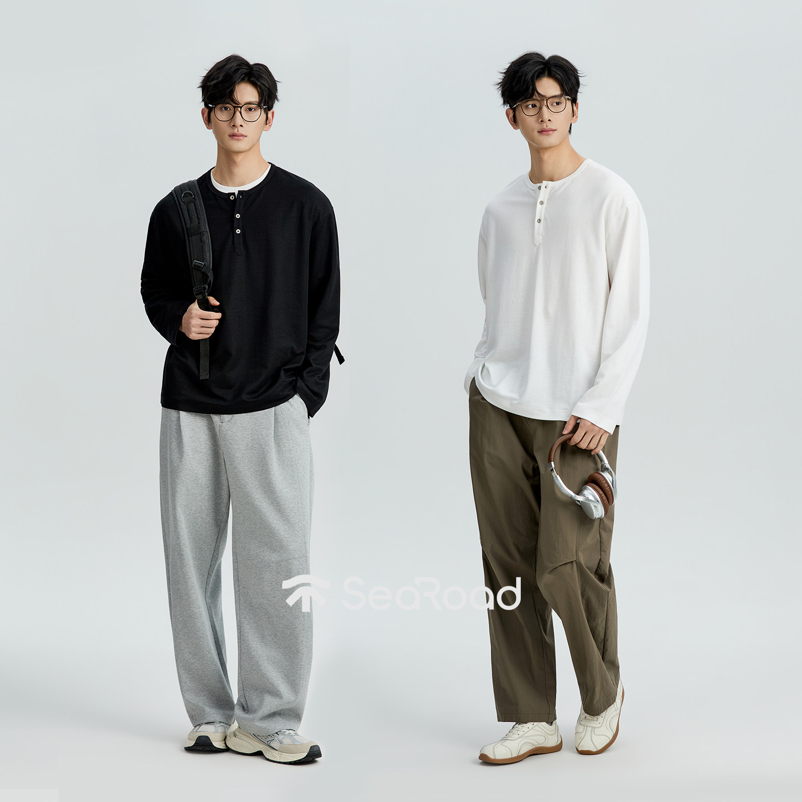 📚 海上公路三扣亨利领长袖T恤男士春季偏薄款莱赛尔凉感打底上衣服