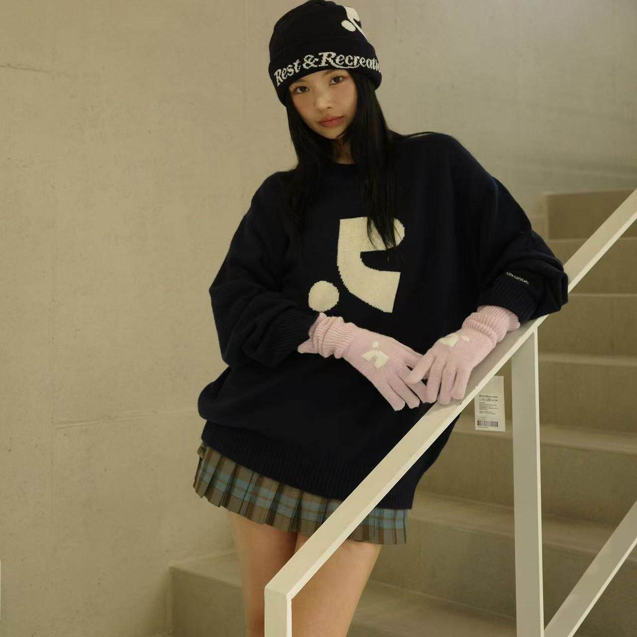 📚 韩代潮牌 rest and recreation新款OVERSIZED提花宽松RR针织毛衣