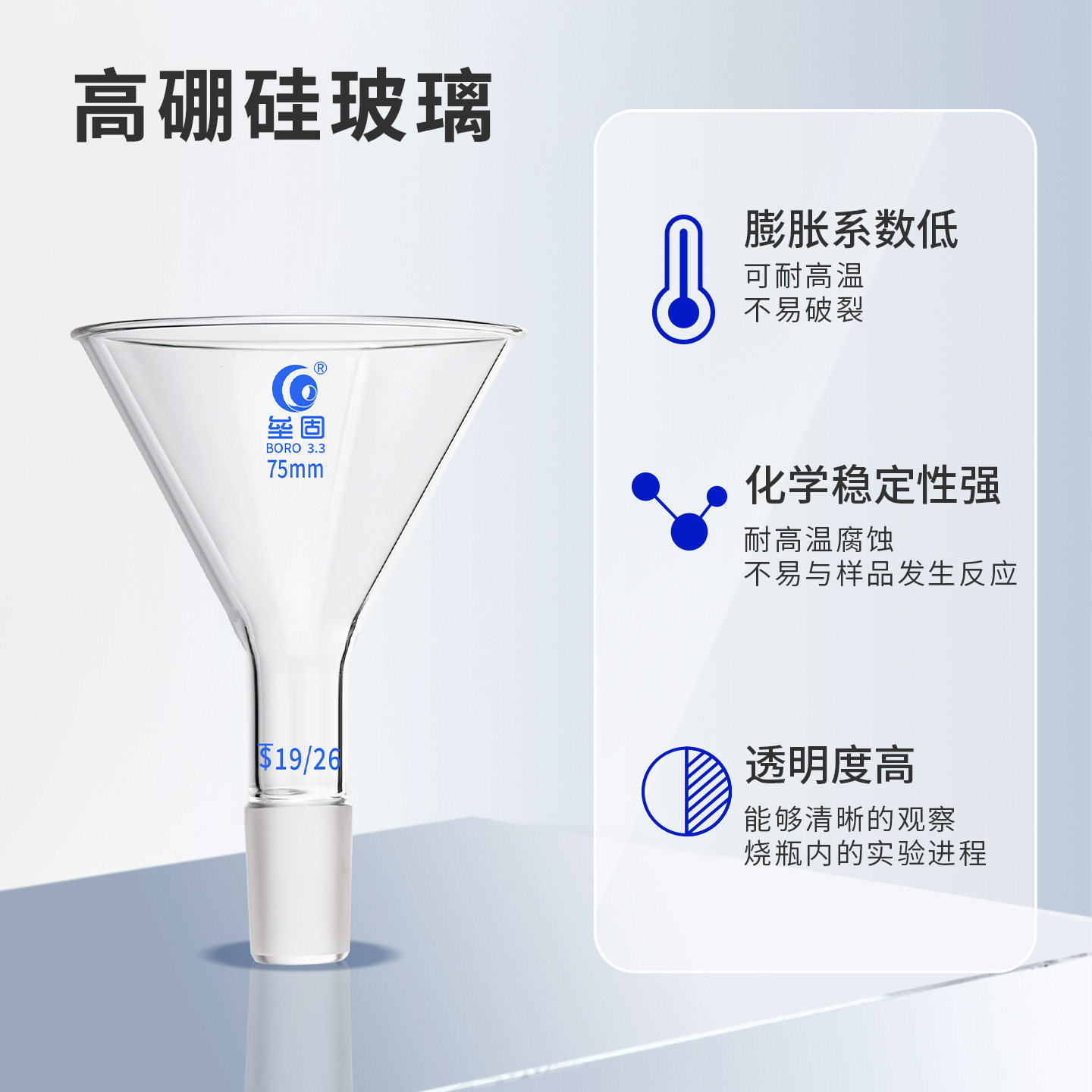 📚 垒固三角加料漏斗 玻璃加料漏斗高硼硅材质实验室用具标口漏斗60/80/90/100mm14#19#24#29#