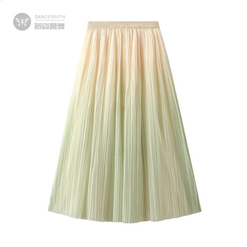 📚 气质渐变色百褶半身长裙2025春品轻奢高腰A字裙0872