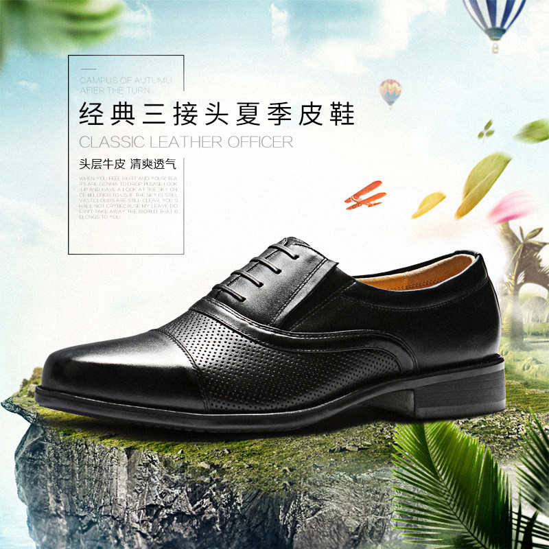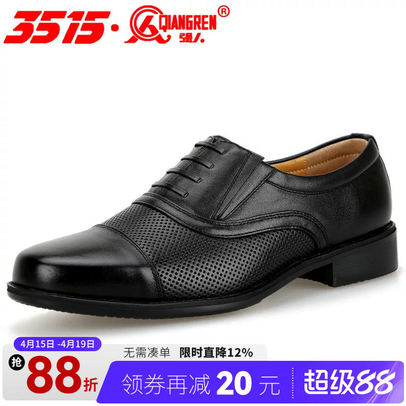 📚 3515强人夏季尖头皮鞋商务正装透气男皮鞋透气真皮镂空皮凉鞋男鞋