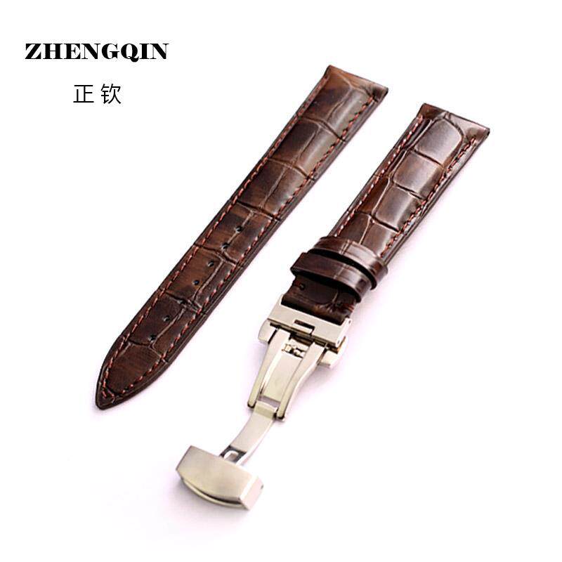 📚 适用俊宇手表配件 男耐磨真皮带20/19mm复古棕 针扣22黑色防水通
