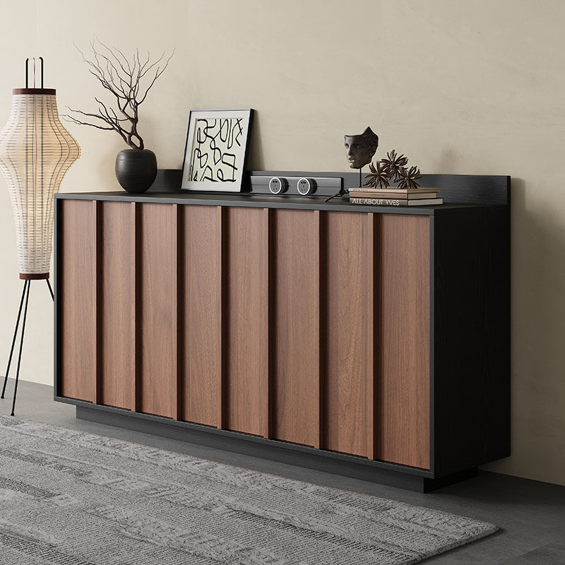 📚 黑胡桃色餐边柜沙发后背靠落地储物半高茶水台咖啡机置物抽屉斗柜