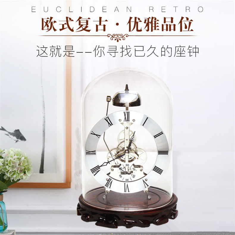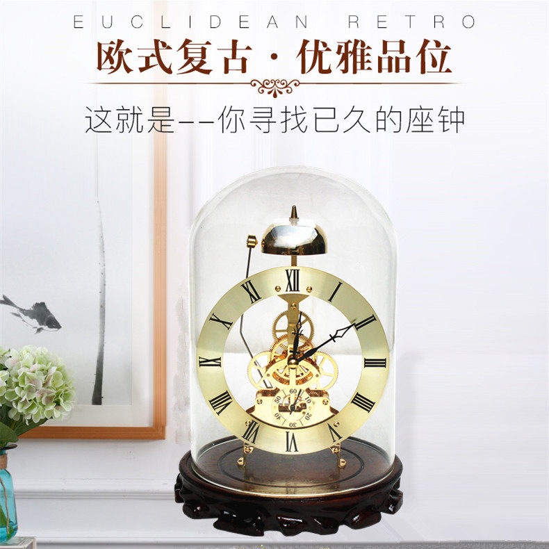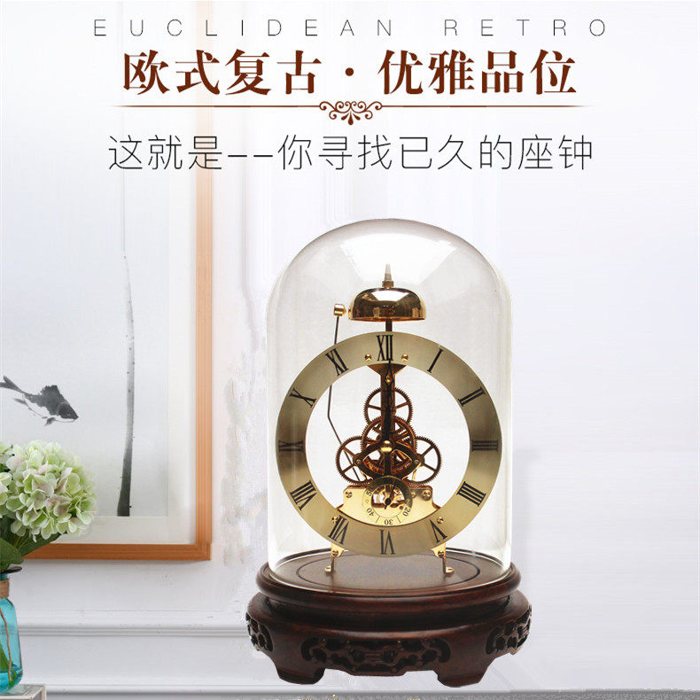 📚 美式复古机械座钟客厅实木创意家用桌面钟表摆件老式齿轮艺术坐钟
