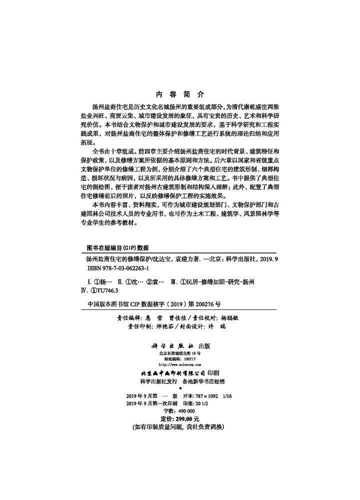 📚 现货 扬州盐商住宅的修缮保护 沈达宝 袁建力 科学出版社