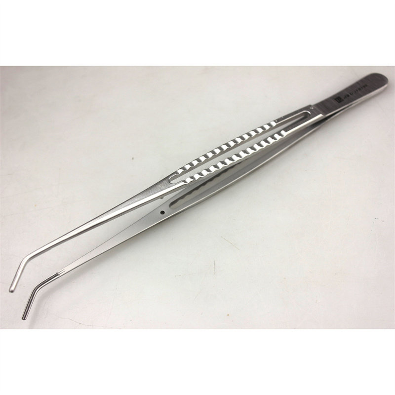 📚 JZ 金钟 弯形无损伤镊 凹凸齿 直头血管镊 镂空柄 心血管组织镊子