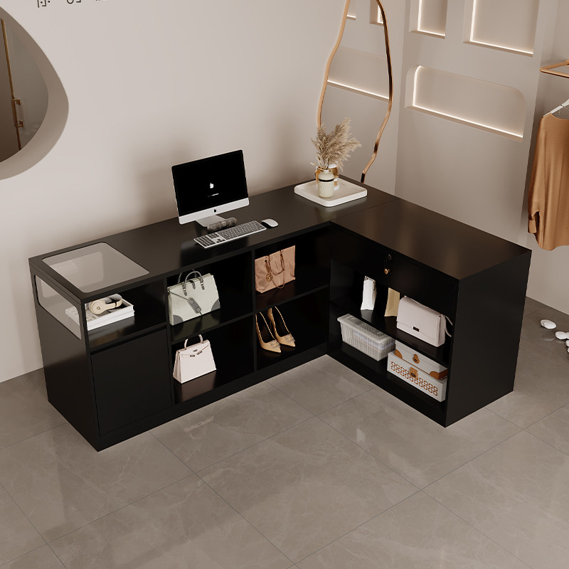 📚 收银台柜台转角吧台L柜小型店铺吧台中古风服装店女装店铺L型柜子