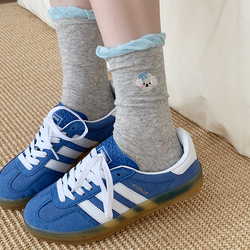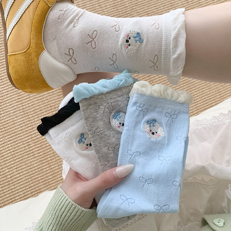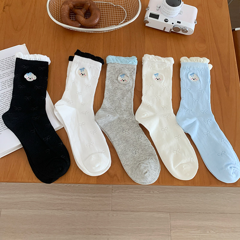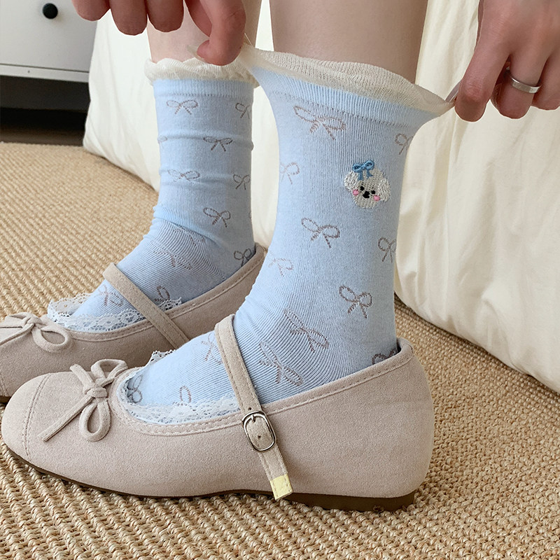 📚 不会丢的袜子 蝴蝶结网眼堆堆袜女ins潮学院风花边中筒袜夏季薄款
